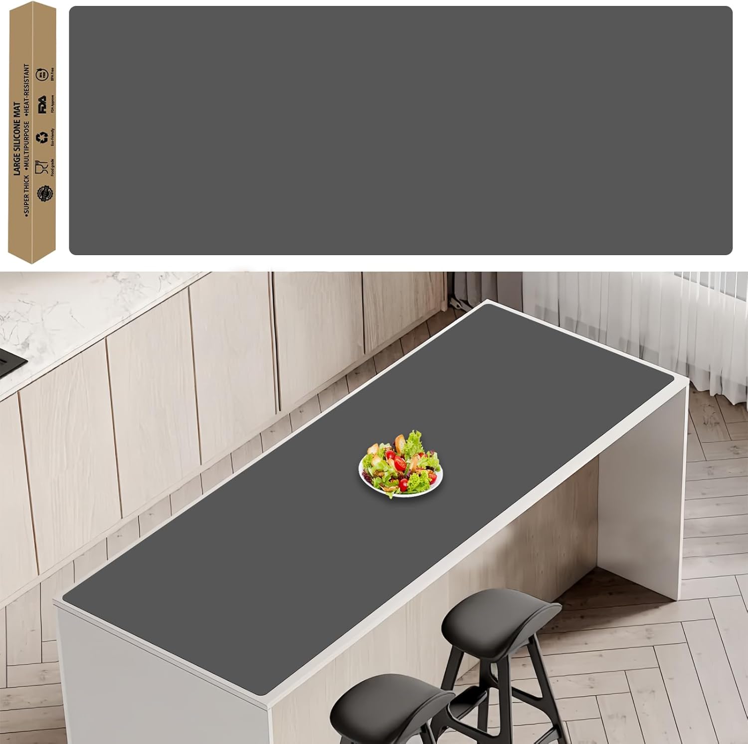 78.7''x23.6'' Extra Large Silicone Mat for Kitchen Counter, Heat Resistant Non-Slip Kitchen Island Protector Mat, Silicone Placemat for Countertop Protector, Dark Gray