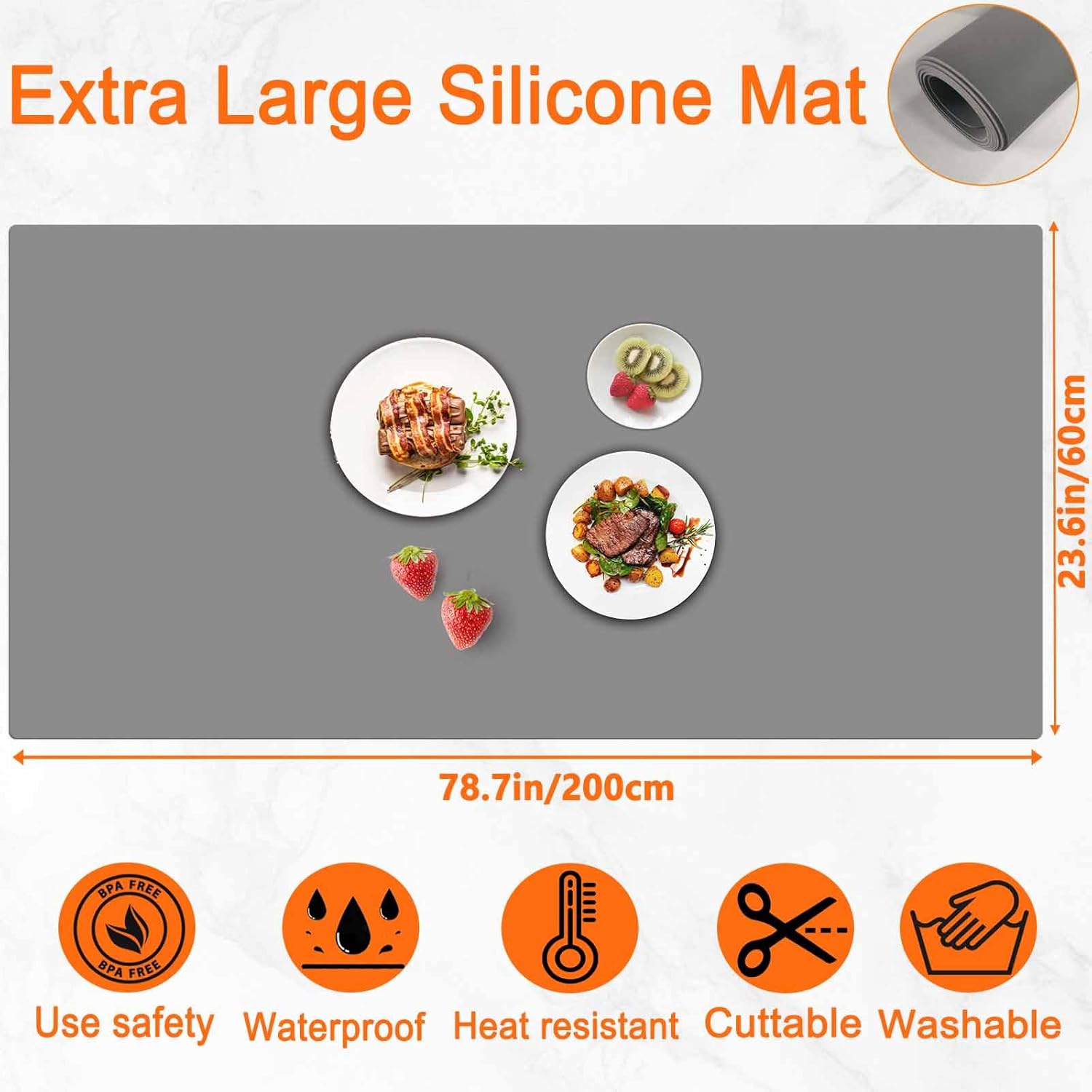 • 【Extra Large Size】: Oversize 78.7''x 23.6''(200cmx60cm), Our silicone countertop protector mat is huge enough to prevent splatters or stains, including heat, scratches, grease, and more. Its generous size allows you to work freely without worrying about spills or messes damaging your countertop.