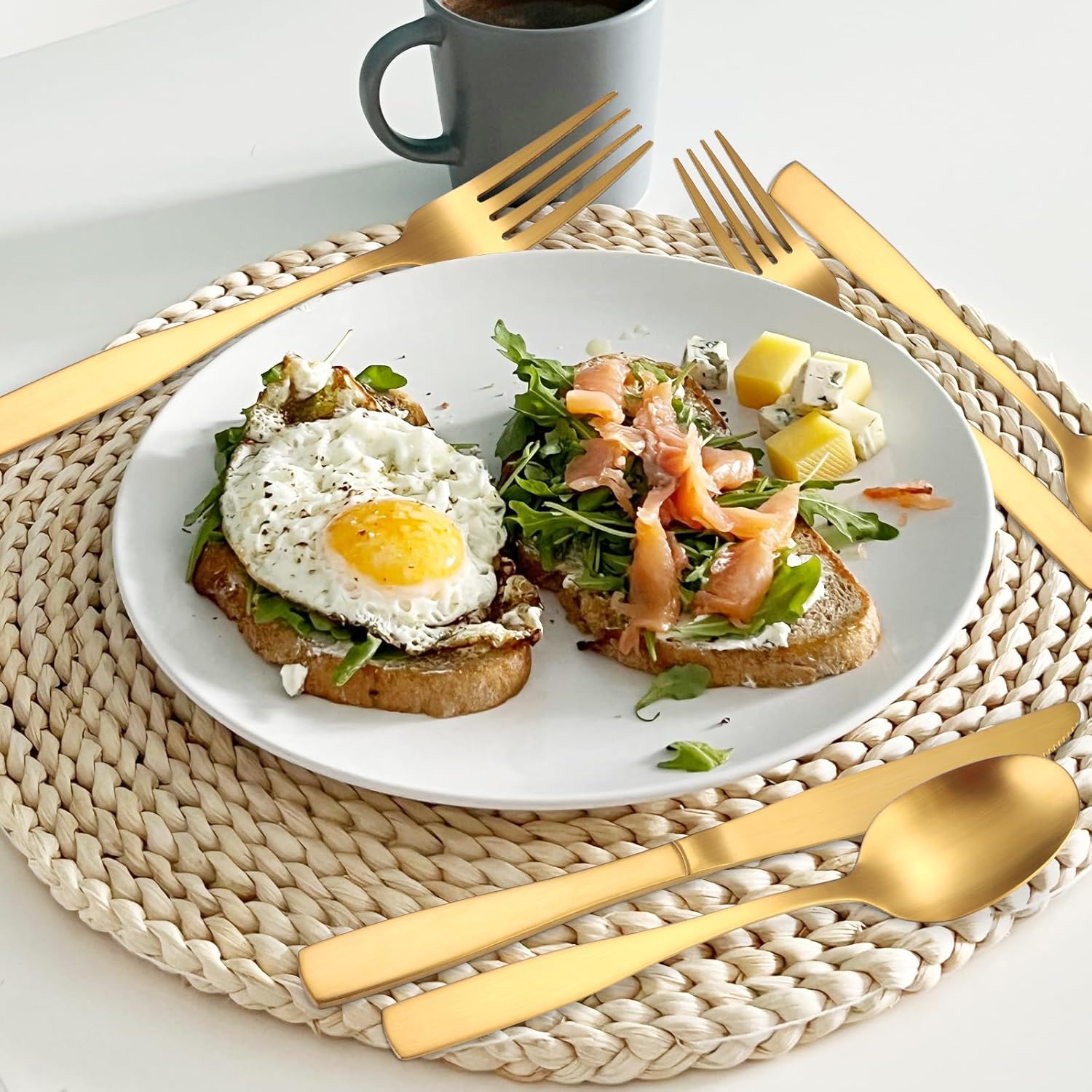 • Matte Finish: Elevate your dining experience with this luxurious gold matte cutlery set for 6. The sleek matte finish adds a modern touch to your table setting, making every meal feel like a special occasion.