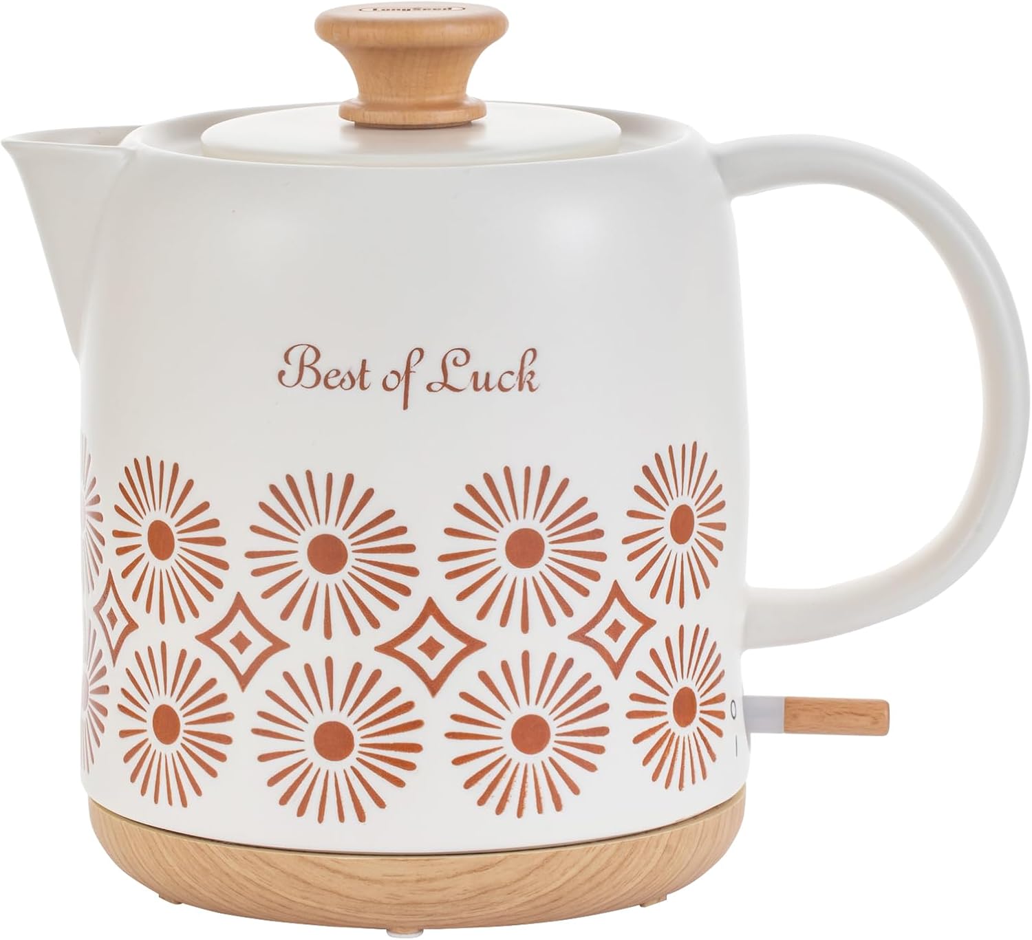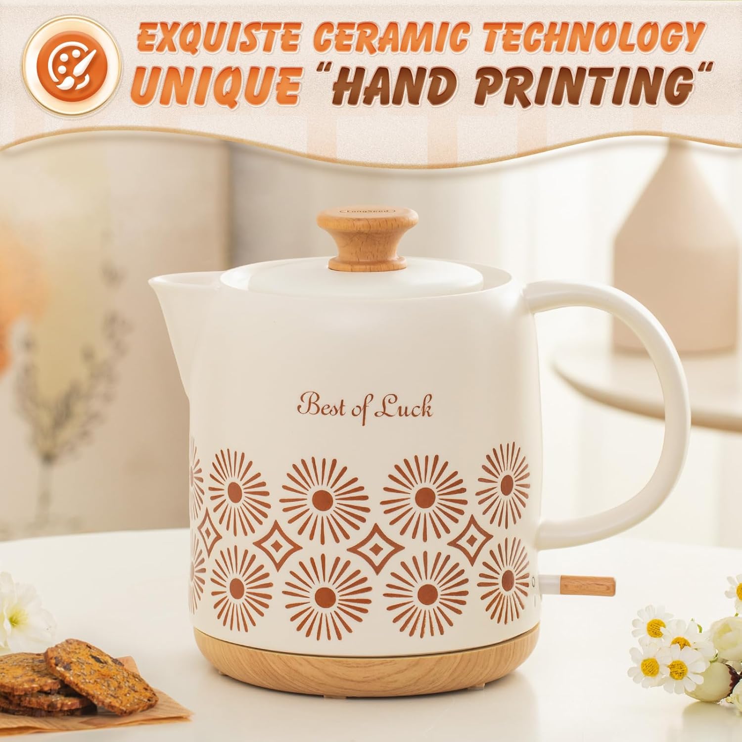 • Cordless Rotatable Base : The ceramic electric kettle features a 360 degree. You can place the electric tea kettle pot in any direction, offering great flexibility for more convenient boiling of water. With LED boiling water indicator light