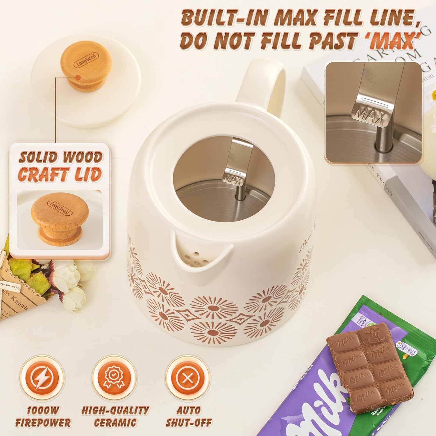 Ceramic Electric Kettle 1 Quarts, Automatic Shut Off, Porcelain Teapot, Hot Water Electric Boiler with LED Light, Boil Dry Protection, Short Spout 1000W Rapid Boiling Water for Tea Coffee