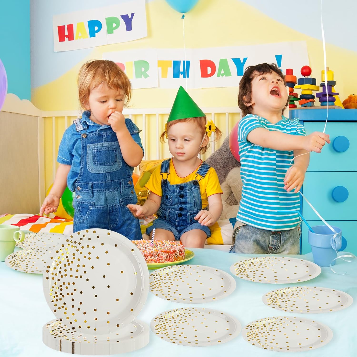 • Golden Dot Design: Birthday plates and napkins are decorated with gold polka dots in a very stylish and aesthetically pleasing design with brilliant and attractive colors, every guest will love this beautiful design, ideal for multiple themed celebrations