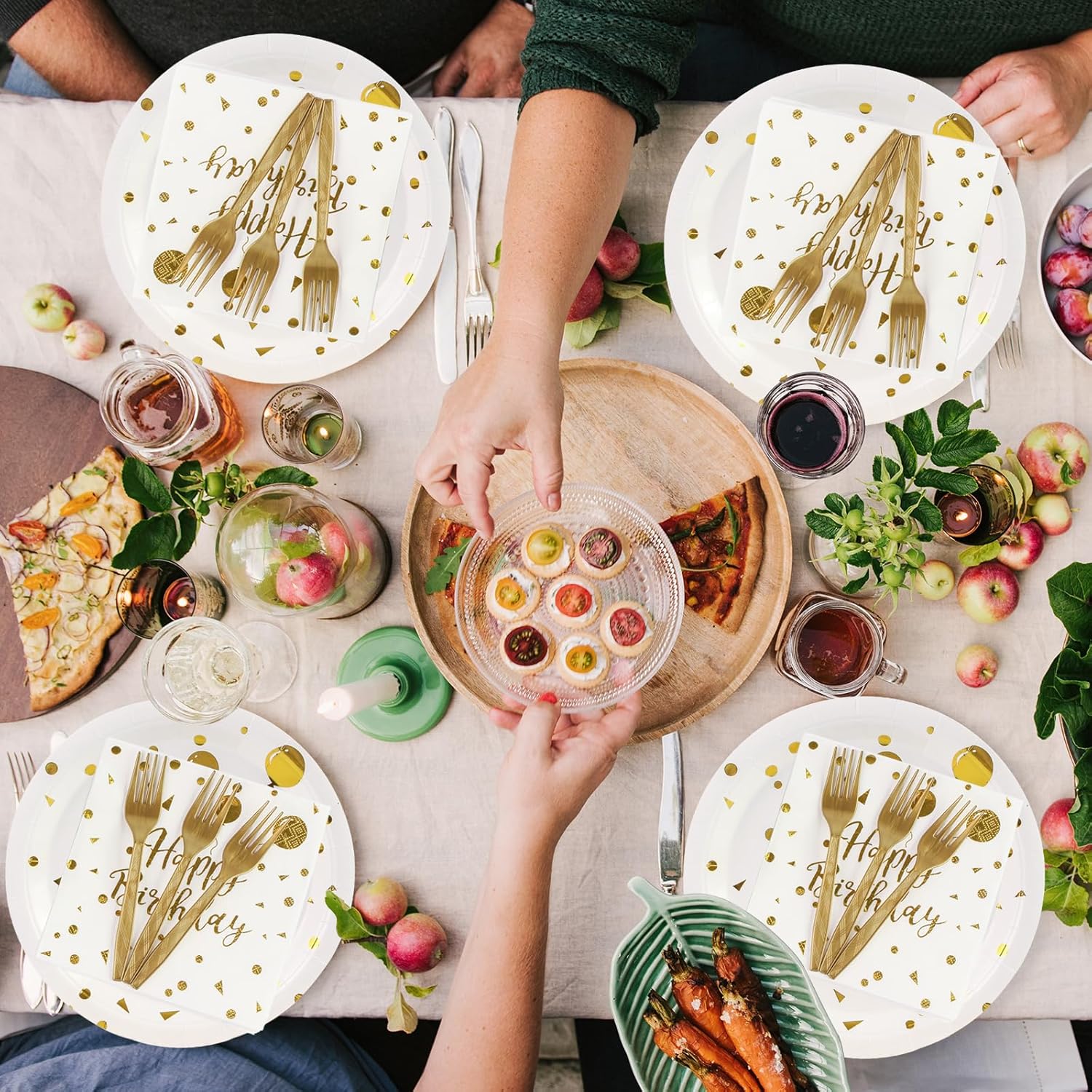 • Golden Dot Design: Birthday plates and napkins are decorated with gold polka dots in a very stylish and aesthetically pleasing design with brilliant and attractive colors, every guest will love this beautiful design, ideal for multiple themed celebrations