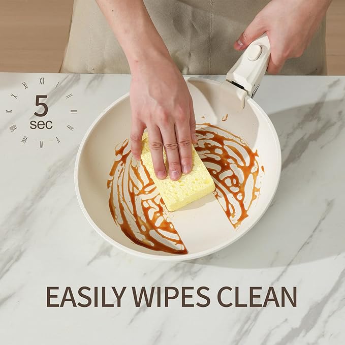 • 3. Easy Cleaning & Wide Compatibility: Just a cloth and rinse it with water, less water wasted.recommend hand wash,it is really easy to clean. with extended bottom design. Our nonstick cookware can work on all cooktops, including induction.