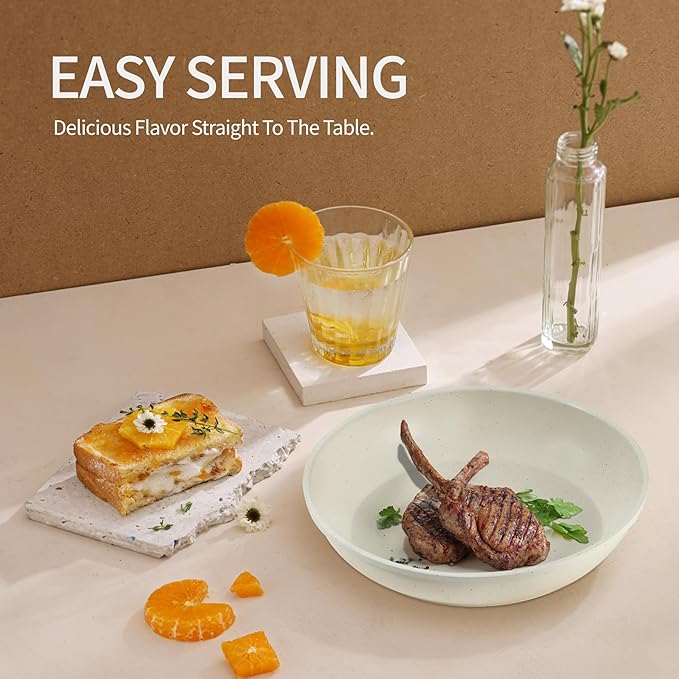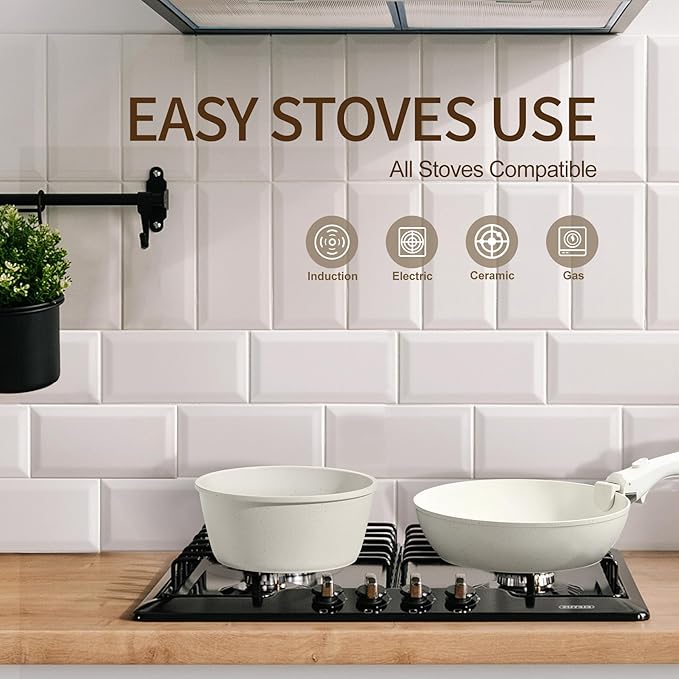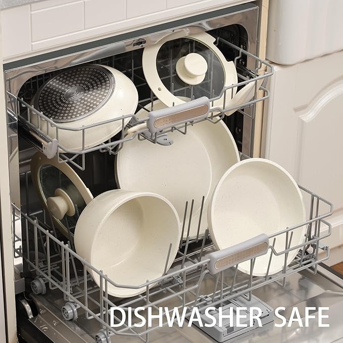 • 3. Easy Cleaning & Wide Compatibility: Nonstick ceramic cookware set Just a cloth and rinse it with water, less water wasted.recommend hand wash,ceramic frying pan set it is really easy to clean. ceramic nonstick cookware set with extended bottom design. Our nonstick cookware ceramic pans can work on all cooktops, non stick ceramic frying pan can use for induction cooktops.