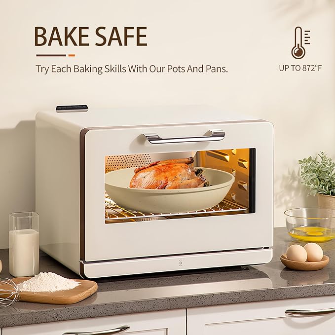 • 2.Pots and pans set non stick secure removable handle: Ceramic cookware set non toxic Handle Support up to 22 pounds, the ceramic cookware set handle is heavy duty tested, ceramic pots and pans fit for removable handle set pots and pans, our non stick ceramic pots and pan set no need to worry about wobbly handles.