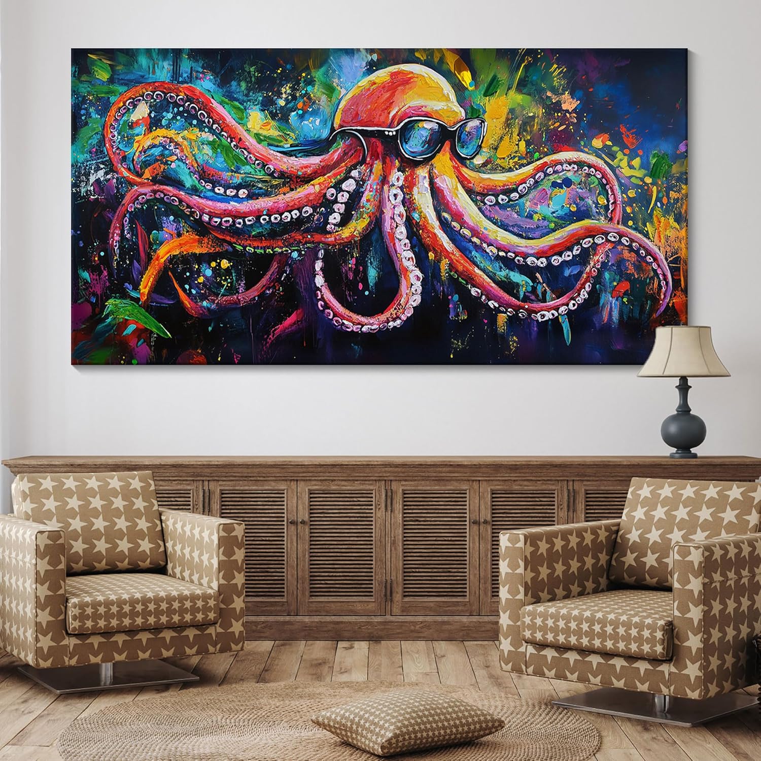 • Wall Art for Living Room: This abstract colored graffiti octopus canvas wall art features a one-of-a-kind design. The artistically blended colors and graffiti-inspired strokes create a visually stunning and highly unique piece that will instantly become the focal point of any room, adding a touch of modern and eclectic charm to your interior decor.
