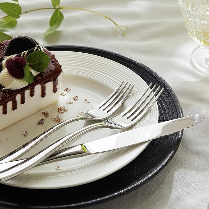 • Vintage Silver Finish: Crafted from 18/0 stainless steel with a timeless vintage look. The gently curved handles add elegance, while the finish resists fingerprints and stays looking clean. Safe for dishwashers, so cleanup is easy without damaging the surface