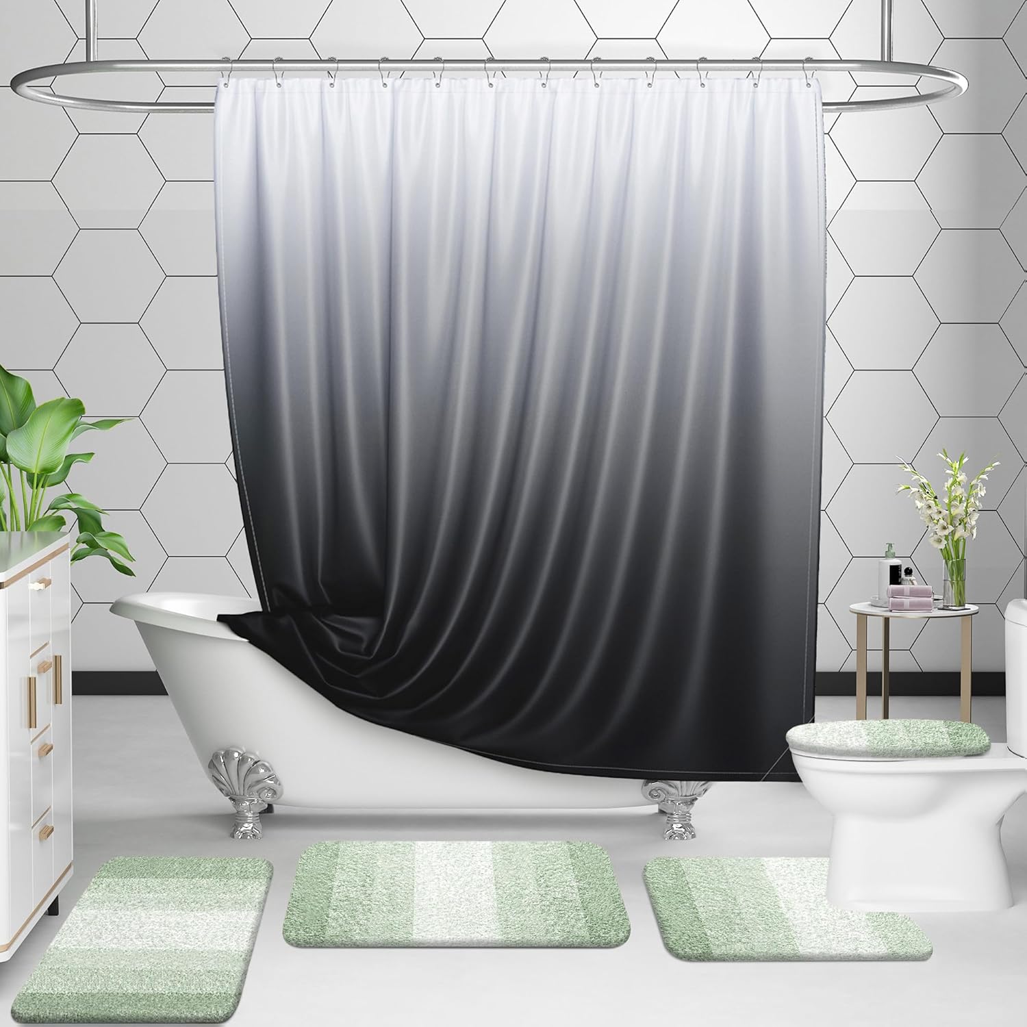 OLANLY Bathroom Rug Set 2 Piece, Soft Absorbent Microfiber Bath Rug Set, Non-Slip, Machine Wash Dry, Plush Shaggy Bath Mats for Bathroom (47"x20"+24"x16", Sage Green)