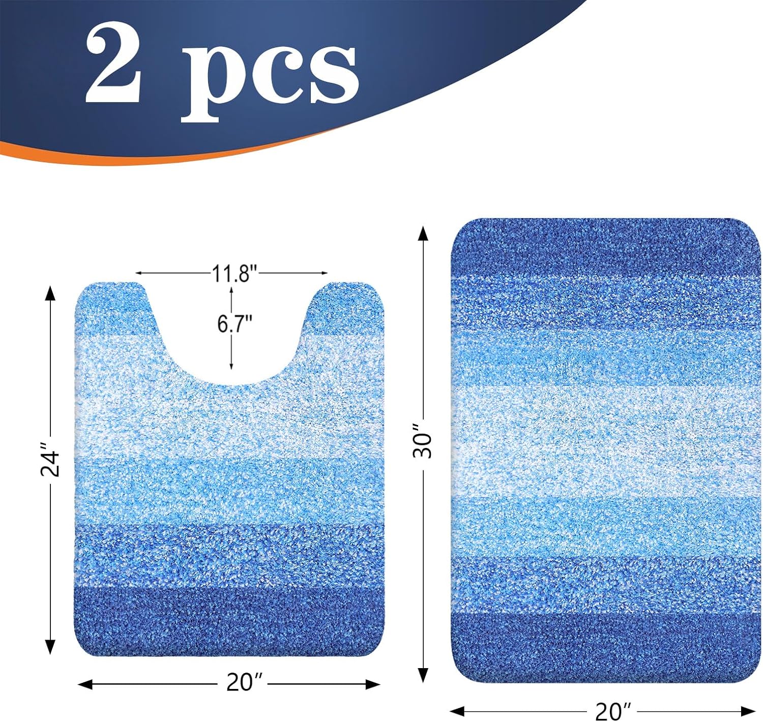 OLANLY Bathroom Rug Set 2 Piece, Soft Absorbent Microfiber Bath Mats and U-Shaped Contour Toilet Rug, Non-Slip, Machine Wash Dry, Shaggy Bath Mats for Bathroom (30"x20"+24"x20", Light Royal Blue)