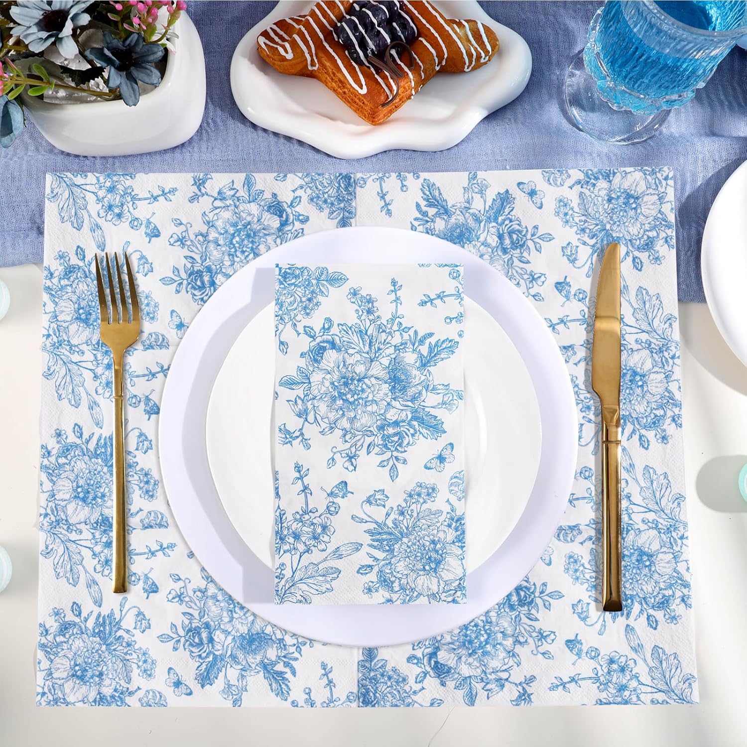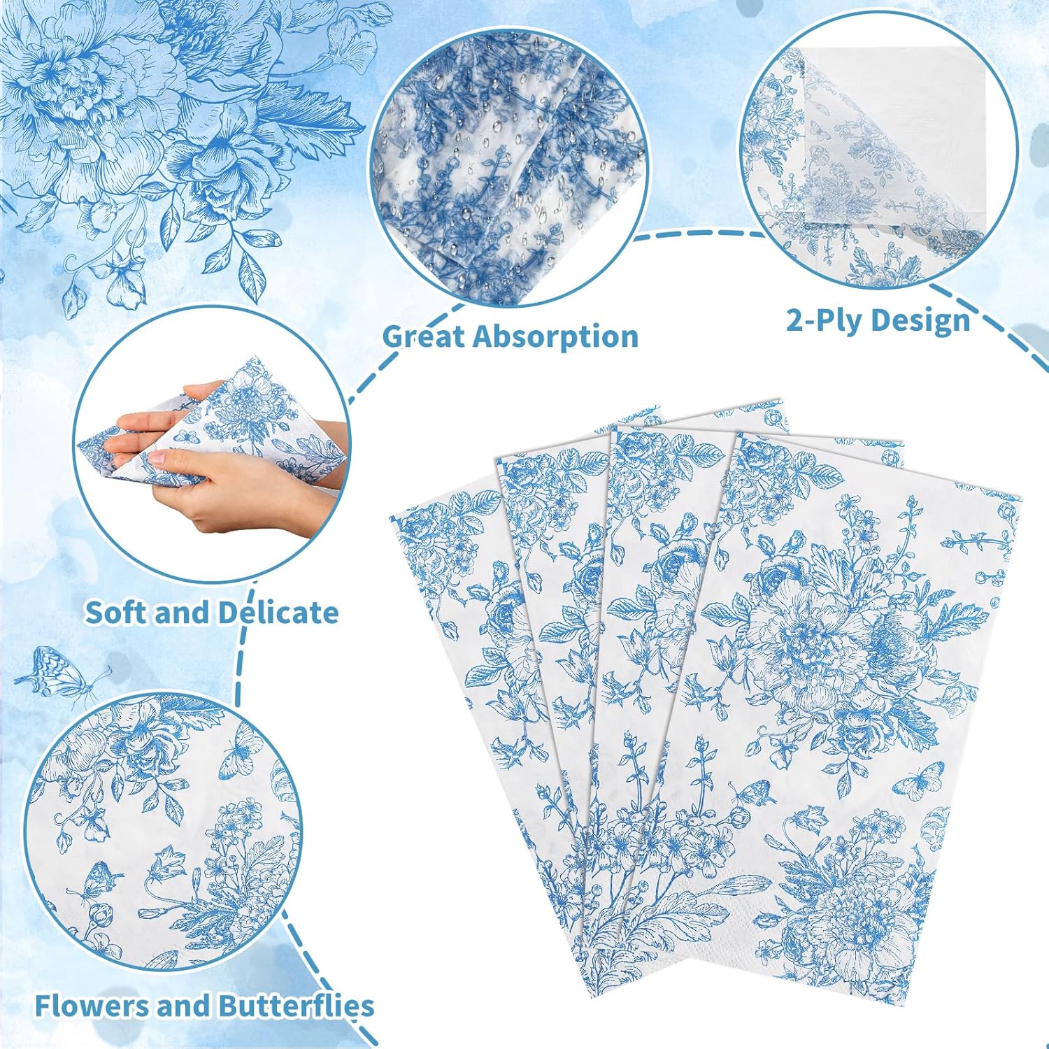 • Package Includes: You will get 100 pcs disposable blue floral guest napkins,enough to meet your daily life or party time use