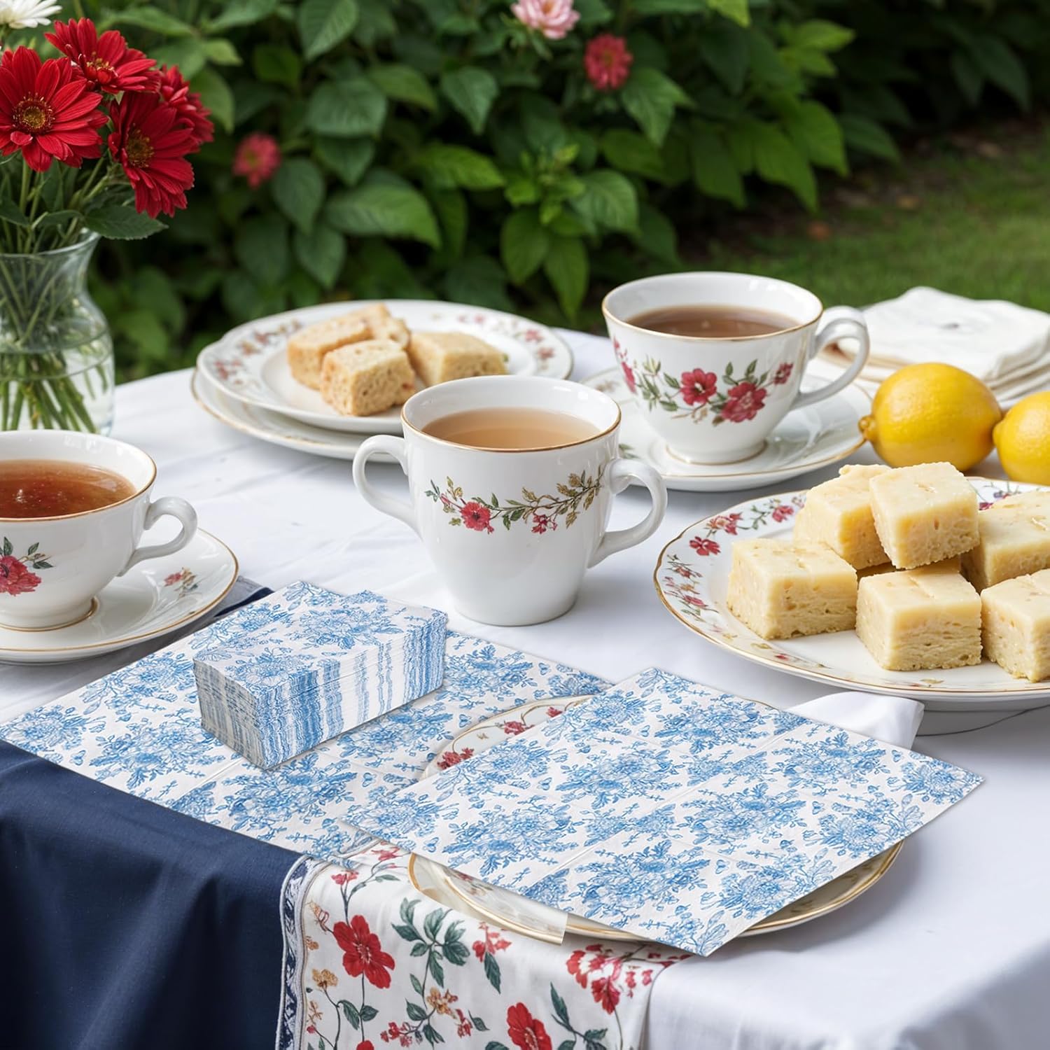 100 Pcs Blue Floral Guest Napkins Disposable Hand Towels for Bathroom Blue and White Paper Napkins Decorative Toile Napkin Chinoiserie Napkin for Wedding, Bridal & Baby Shower, Tea Party