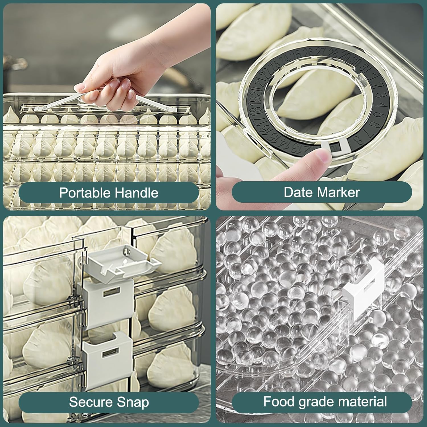 Food Storage Containers with Lids,4-Layer Plastic Cookie Storage Containers Airtight,Stackable Cookie Carrier for Transport Dumpling Storage Box,Green