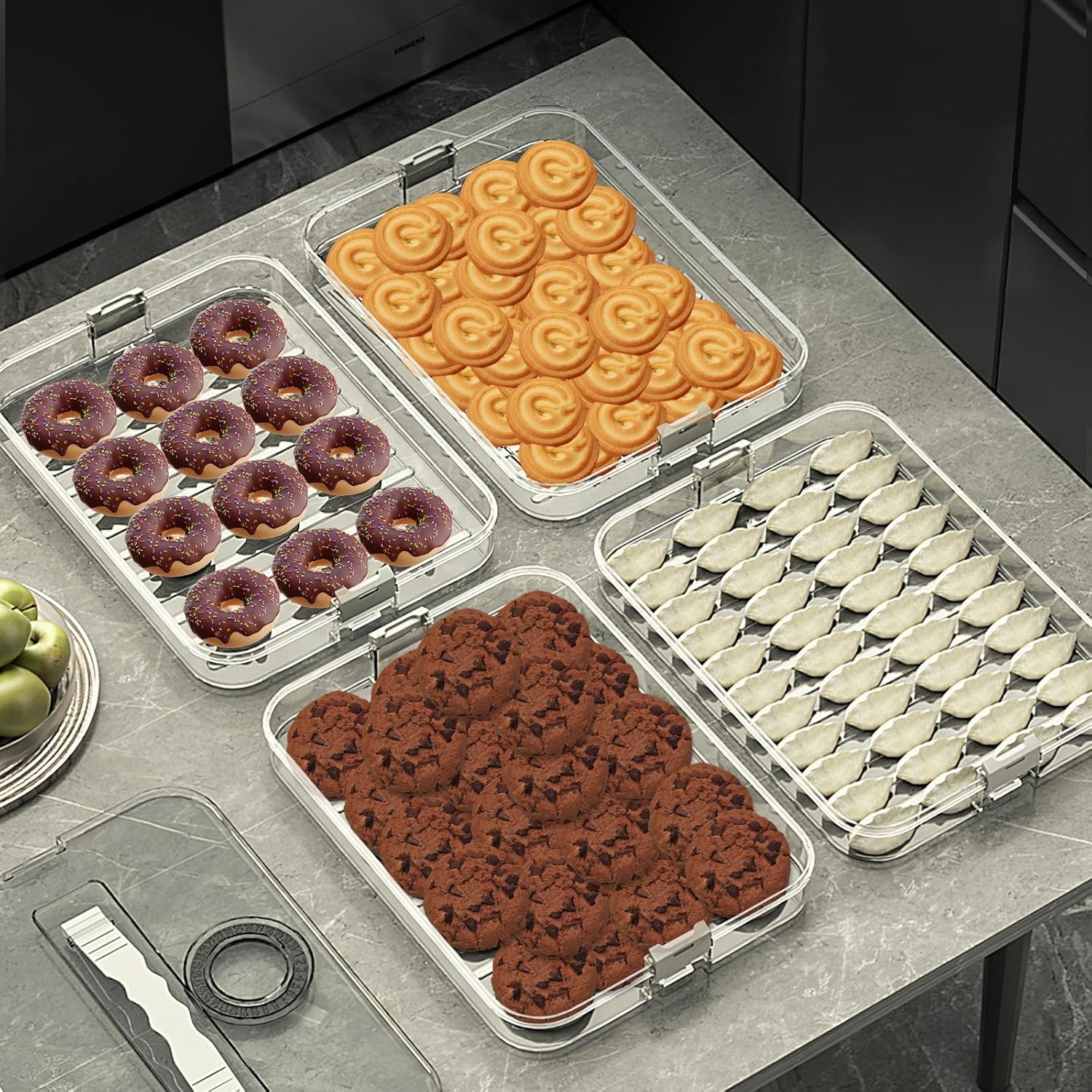 • 【Space-Saving】 With its 4-layer design and stackable feature, this cookie container maximizes storage space. the detachable buckle latches allows you to use each layer independently.