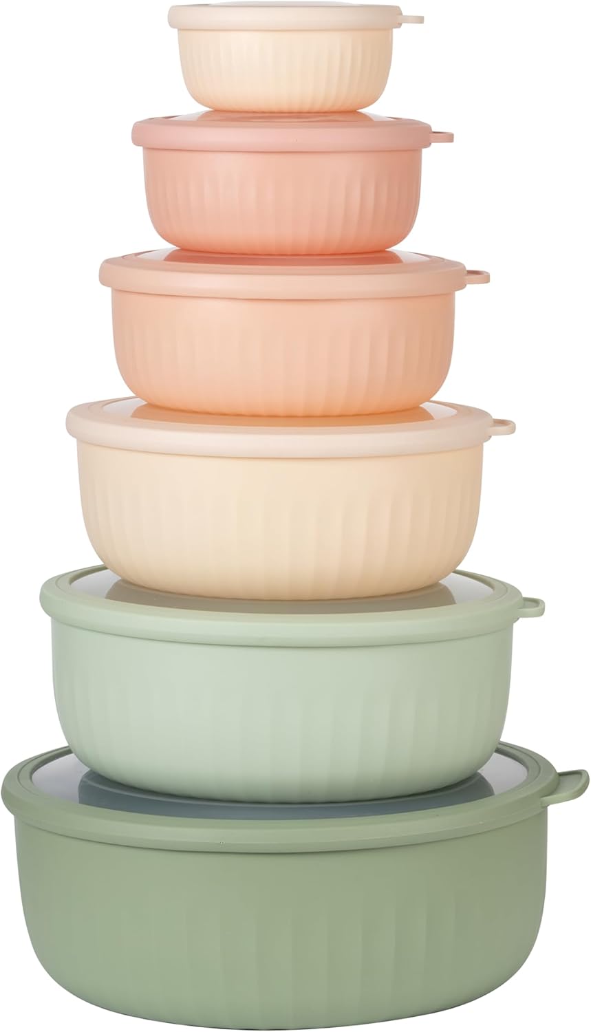 • Cook with Color 12 piece plastic mixing bowl set - non slip bowls with lids; easy to clean, sturdy mixing bowls.