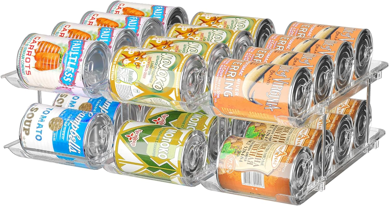 • Size: Canned Food Organizer is transparent, each layer is 4.2in high and 4.9in wide, specifically designed for 4.52in long cans to provide plenty of space for your pantry organization;Each layer is 4.2 inches high and can hold up to 36 cans