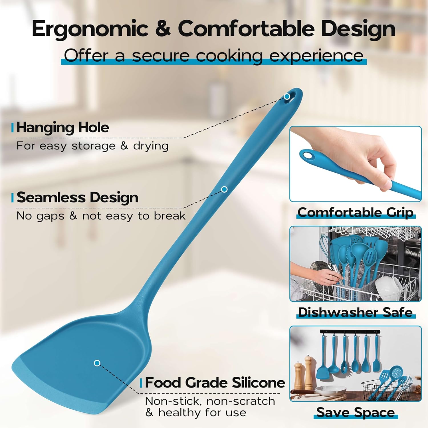 • Food Grade & Durable: our kitchen utensil set is made of food grade silicone, will not release harmful substances, good abrasion resistance and high hardness handles enhance its durability and toughness