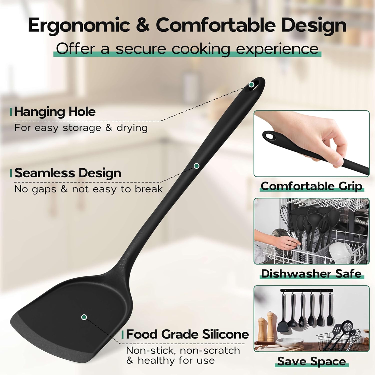 • Non-Stick Cookware Friendly: soft silicone heads protect nonstick surfaces, reinforced cores offer stiffness to flip heavy foods, perfect balance of flexibility and precision, say goodbye to scratched pans
