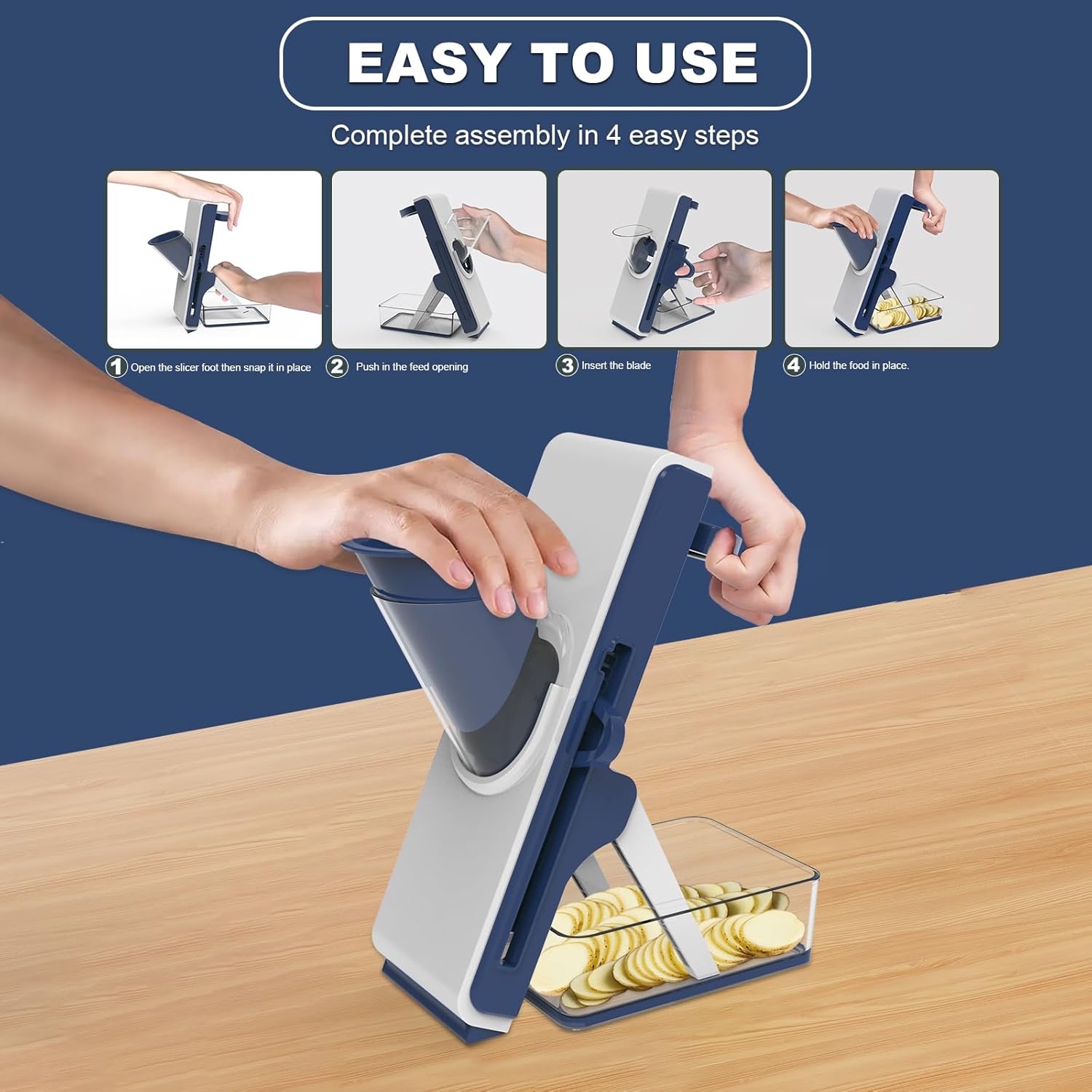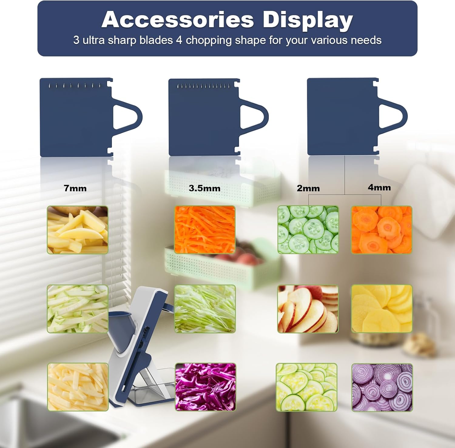 Mandoline Slicer for Kitchen - Vegetable Food Chopper, Cucumber Slicer, Detachable Easy to Clean Kitchen Chopping Artifact (White Blue)