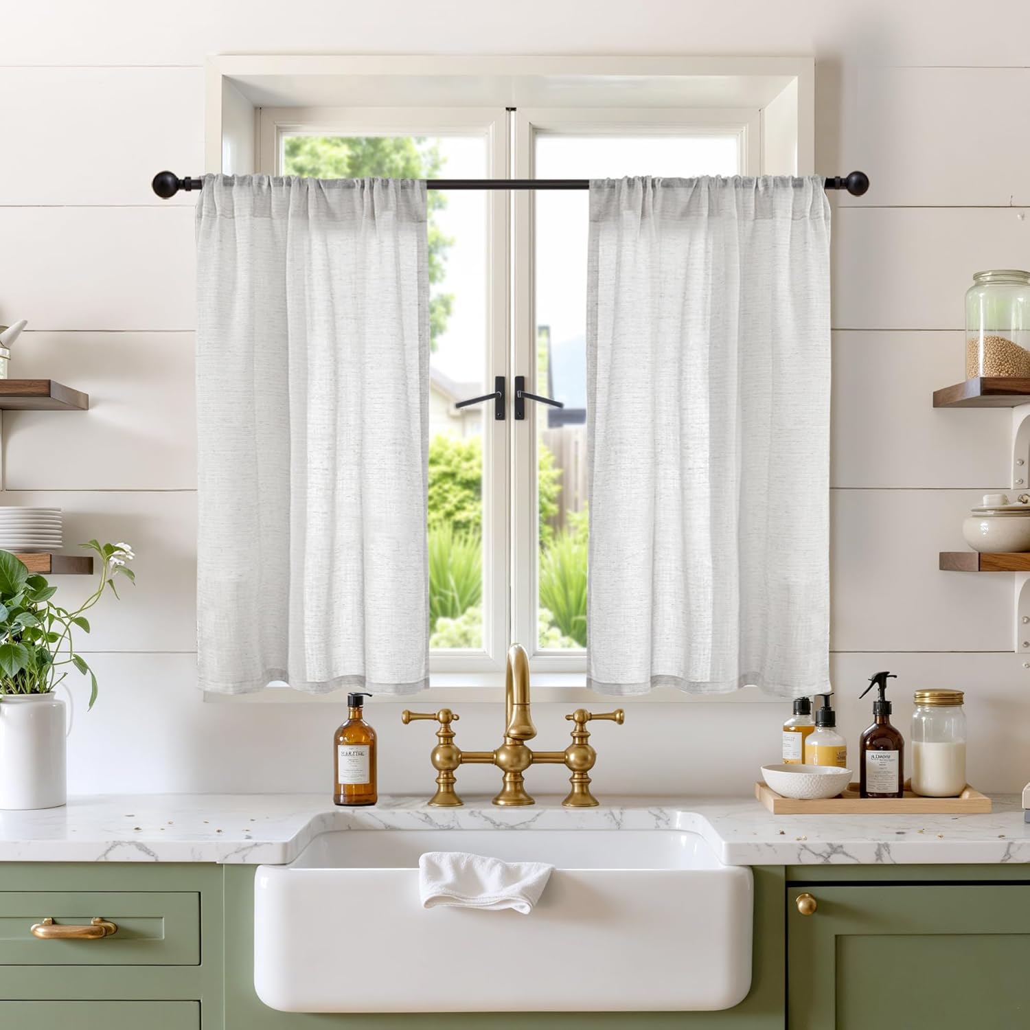 • RICH LINEN TEXTURE: Our short linen curtains is made from high quality natural linen, which retains the unique natural texture and breathability of linen fibers. The distinctive weaving technique make this linen drapes have a rich cross texture, which adds aesthetic appeal, infusing your kitchen with a natural and warm vitality.