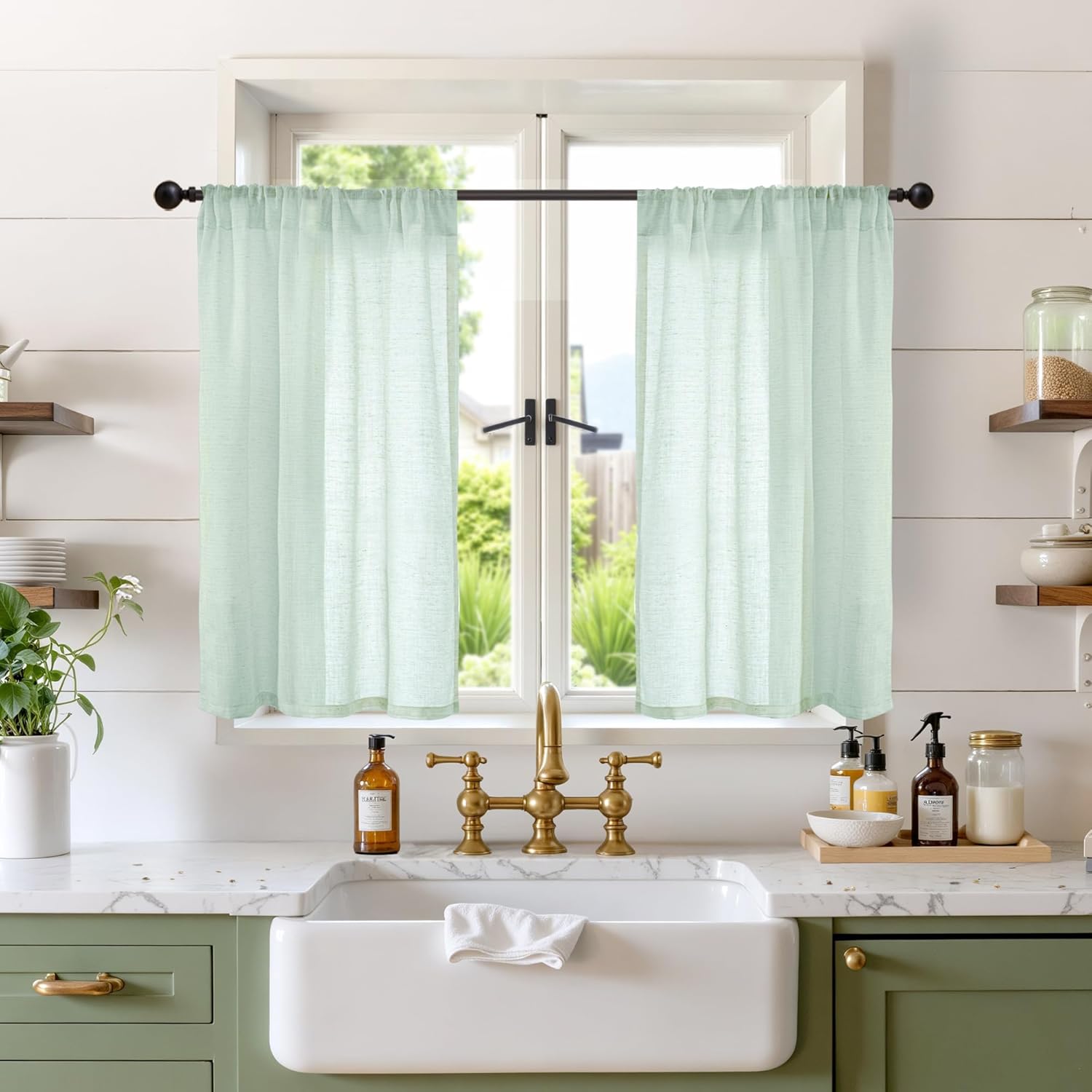 BGment Sage Green Linen Curtains 36 Inch Length for Short Window - Small Drapes Light Filtering for Cafe Bedroom Decorative Lightweight Natural Rustic Rod Pocket, 2 Panels Set, 30 X 36 Inch