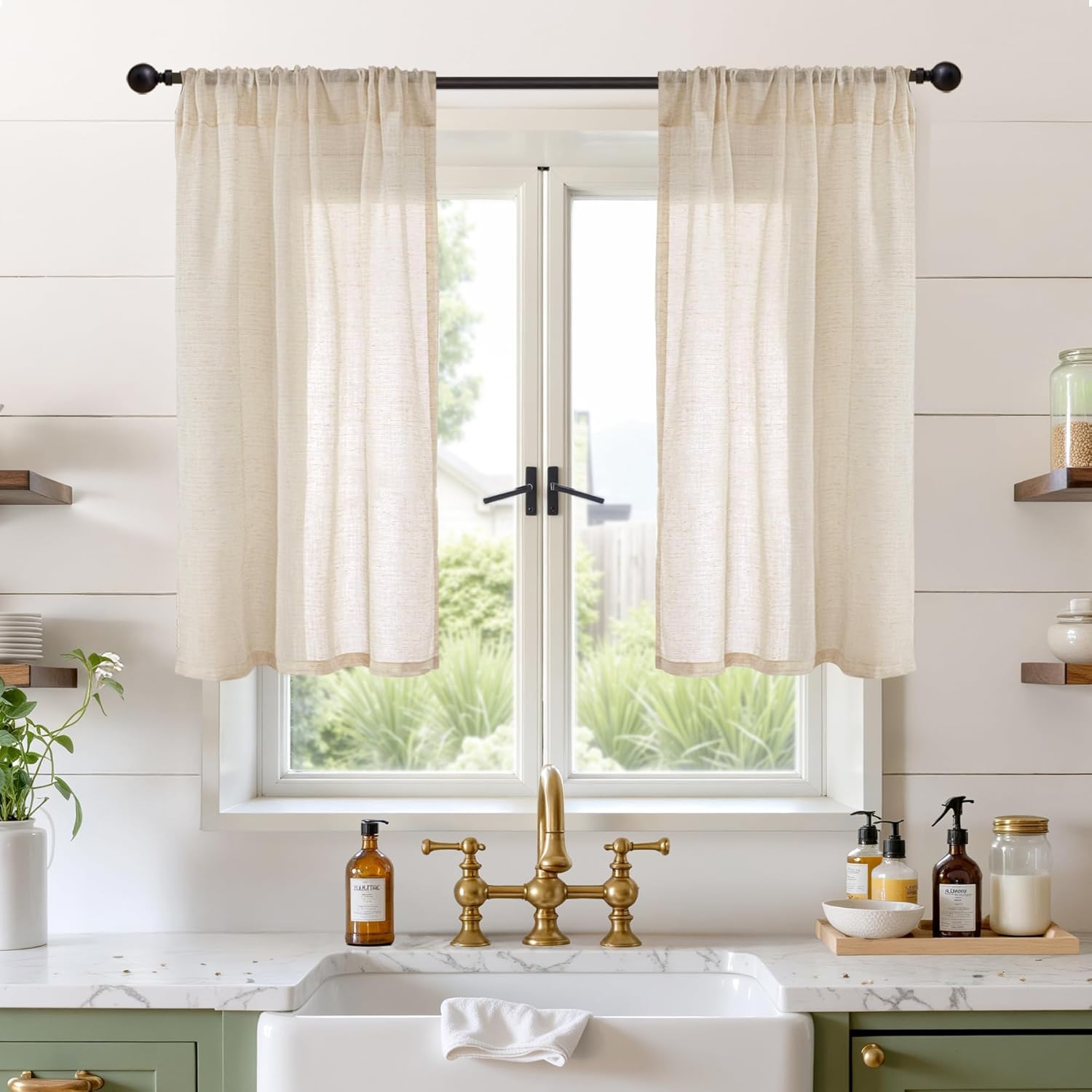 • PERFECT DECOR:This natural and practical kitchen linen curtains harmonizes seamlessly with existing home decor styles, infusing warmth and sophistication into living space. It's ideal for a wide range of small window including kitchen, cafe, living room, bedroom, farmhouse, office, laundry and more. While eco-friendly and pet-friendly makes this curtain recyclable.