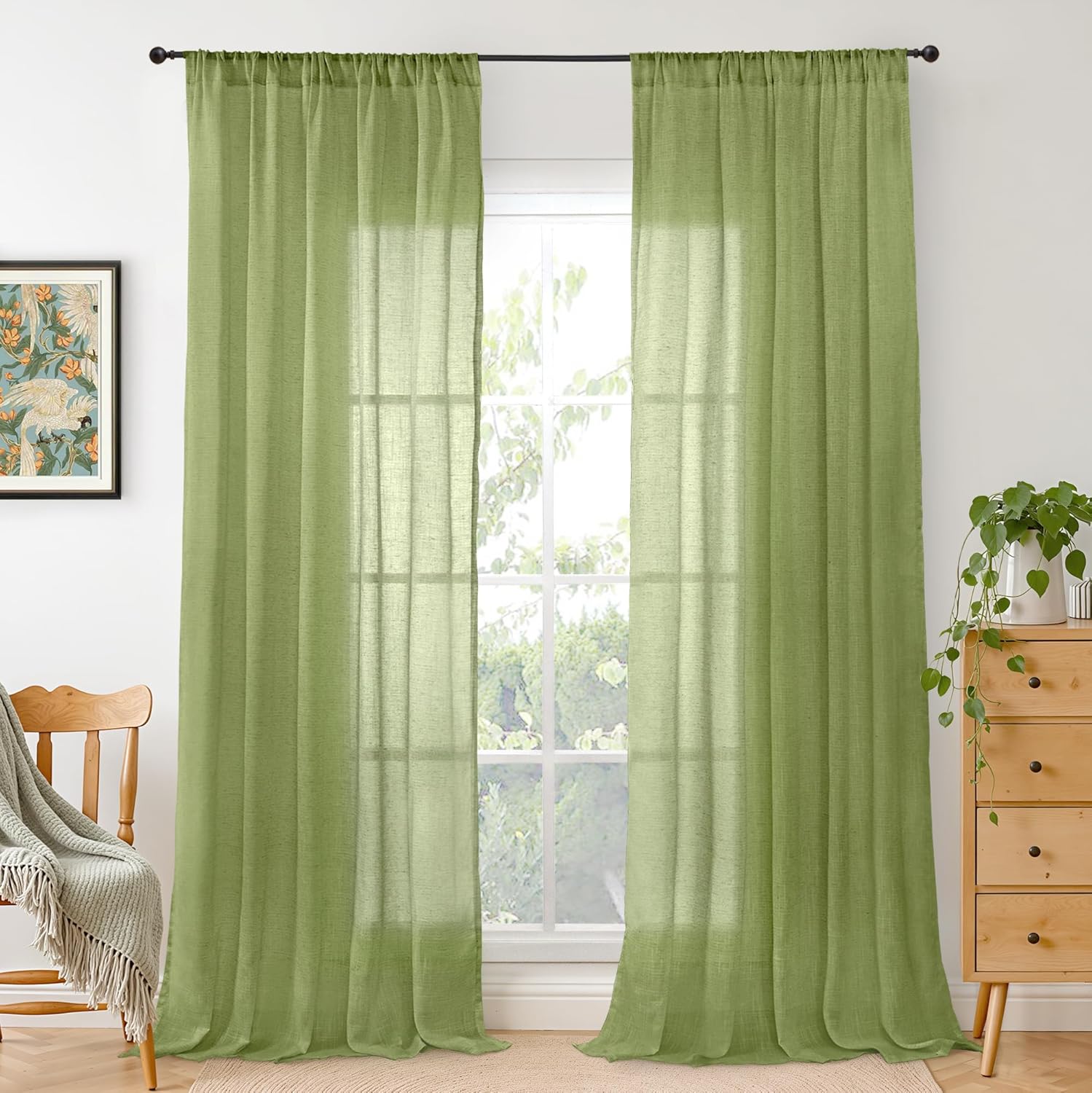 BGment 84 Inch Length Olive Green Linen Curtains for Living Room - Light Filtering Window Drapes Rod Pocket Natural Textured for Bedroom Country Lightweight Rustic Decor, 2 Panels Set, 52 X 84 Inch