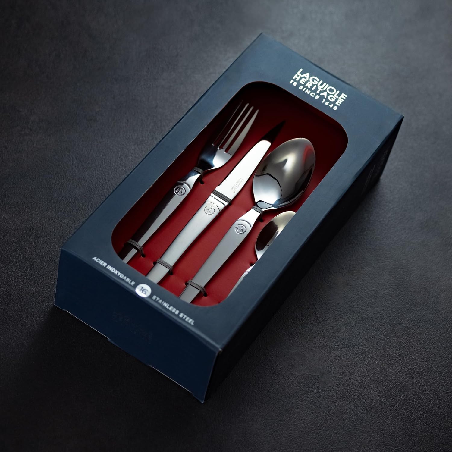Laguiole Heritage Dinnerware Set; Premium Stainless Steel Knives, Forks, Spoons with Ergonomic Handles; Dishwasher Safe; 4 Person Sets; Polished, 16-Piece