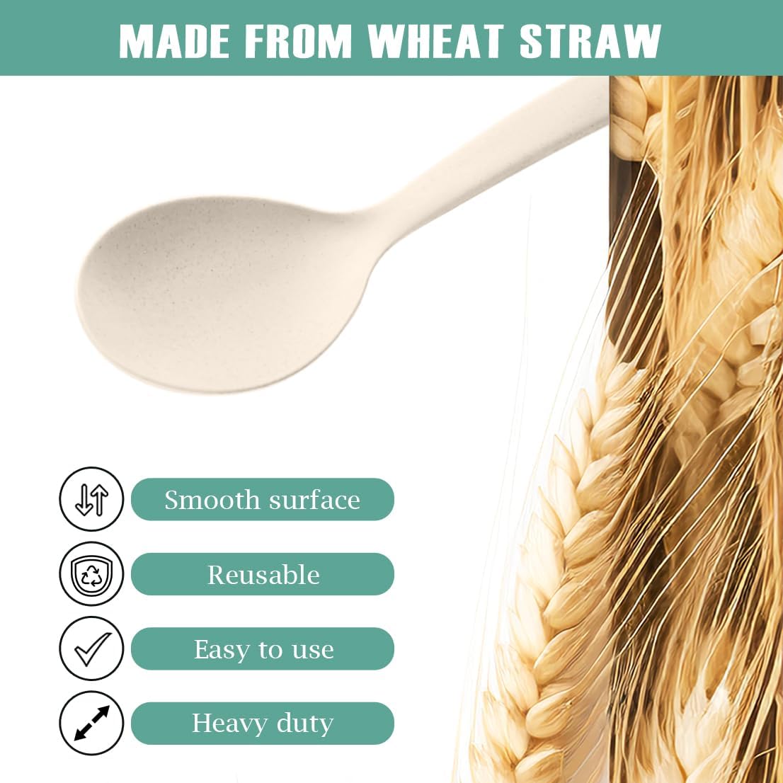 8 Pack 10" Large Reusable Plastic Wheat Straw Serving Spoon Set, 4 Serving Spoons & 4 Slotted Spoons, Kitchen Mixing Serving Spoon for Buffet Chafing Dish Catering (Khaki, Not for Cooking)