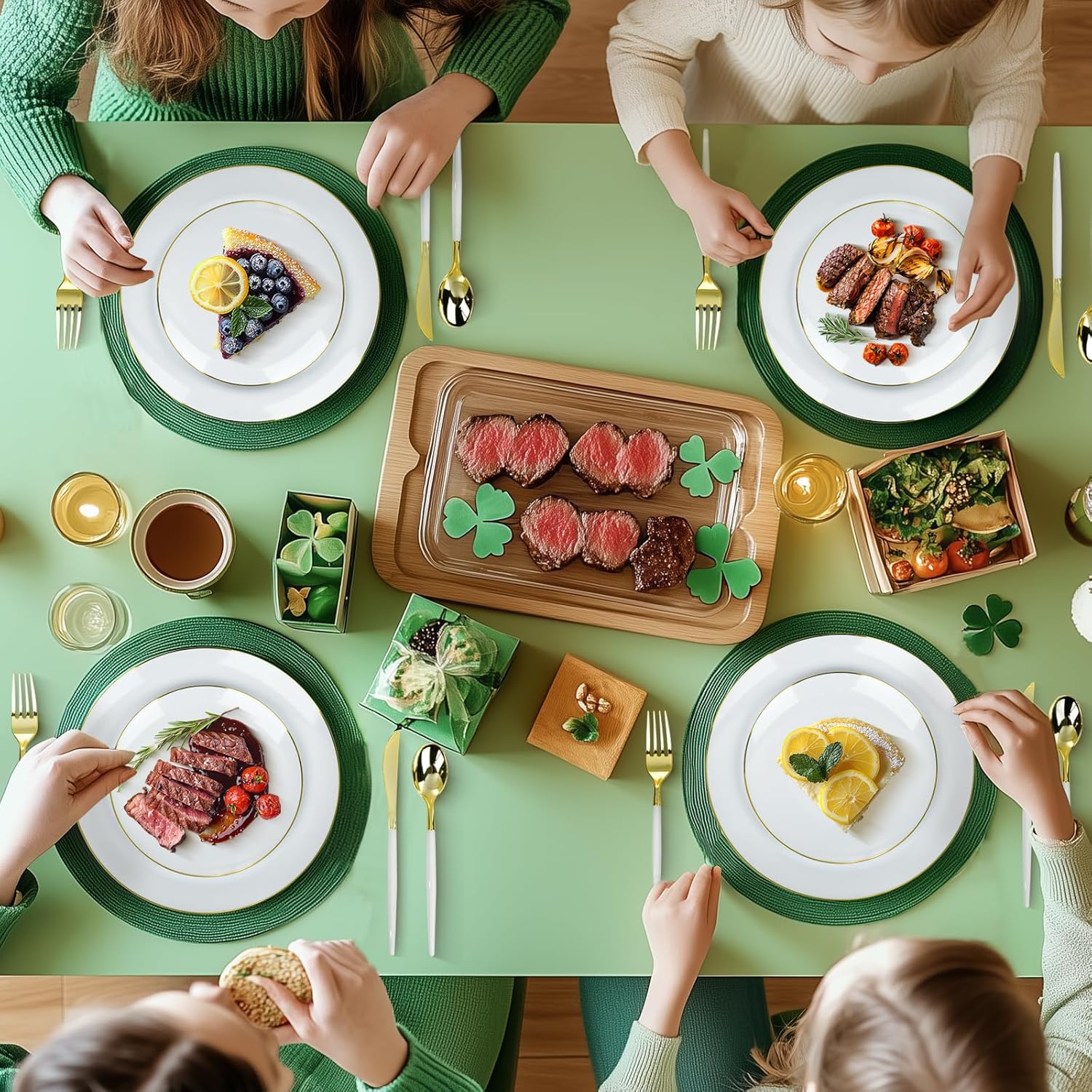 • VALUE PACK: Our white disposable plates for party include 50 dinner plates measuring 10.25 inches and 50 salad plates measuring 7.5 inches, which can accommodate the dining needs of 50 people at once. Just spend more time with your family and friends with our white and gold plastic plate set!