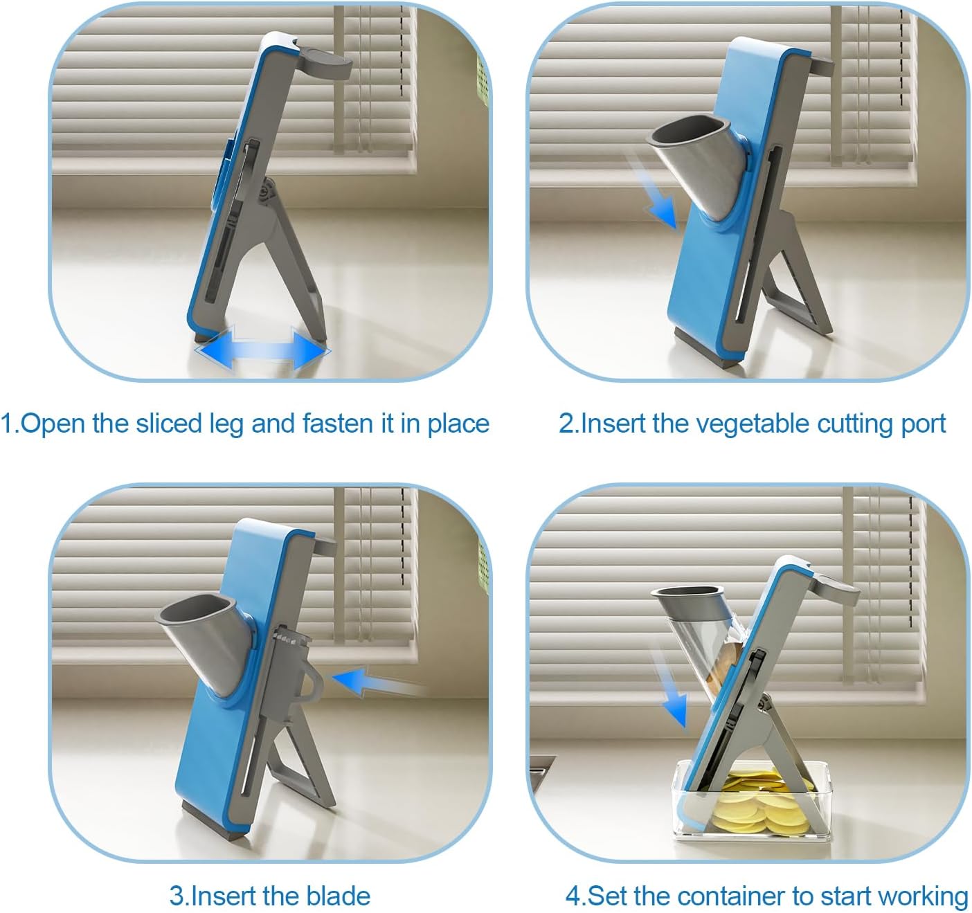 Gray Light Blue Mandoline Slicer - Potato & Vegetable Food Slicer and Chopper - Easy to Clean Kitchen Chopping Artifact