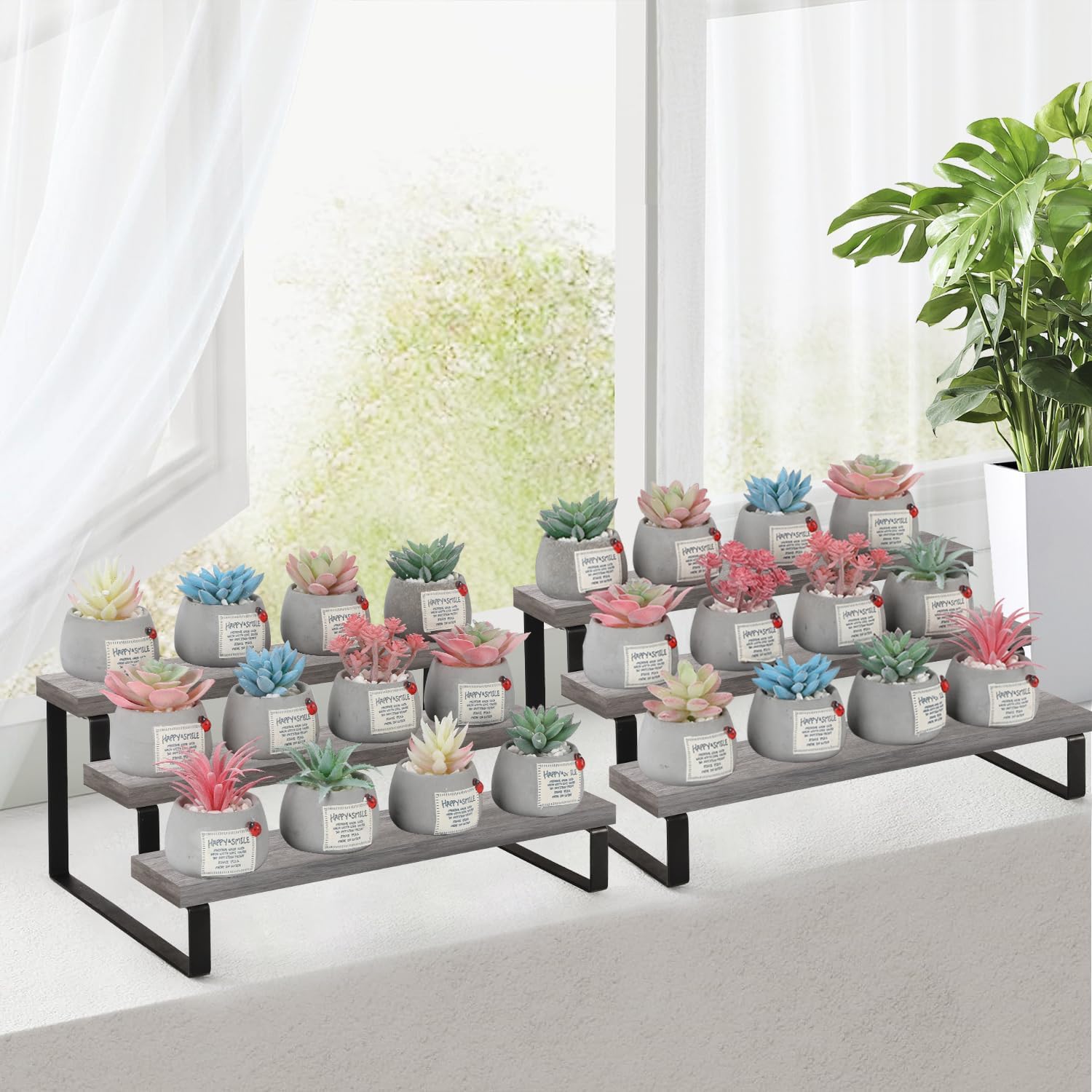 • Convenient Design: The stepped design makes efficient use of your counter space. This wooden display riser is a great idea for displaying toy figurines in cabinets, celebrating party desserts, and cosmetics on the dresser. The raised tiers help to create an eye-catching feature for your items.