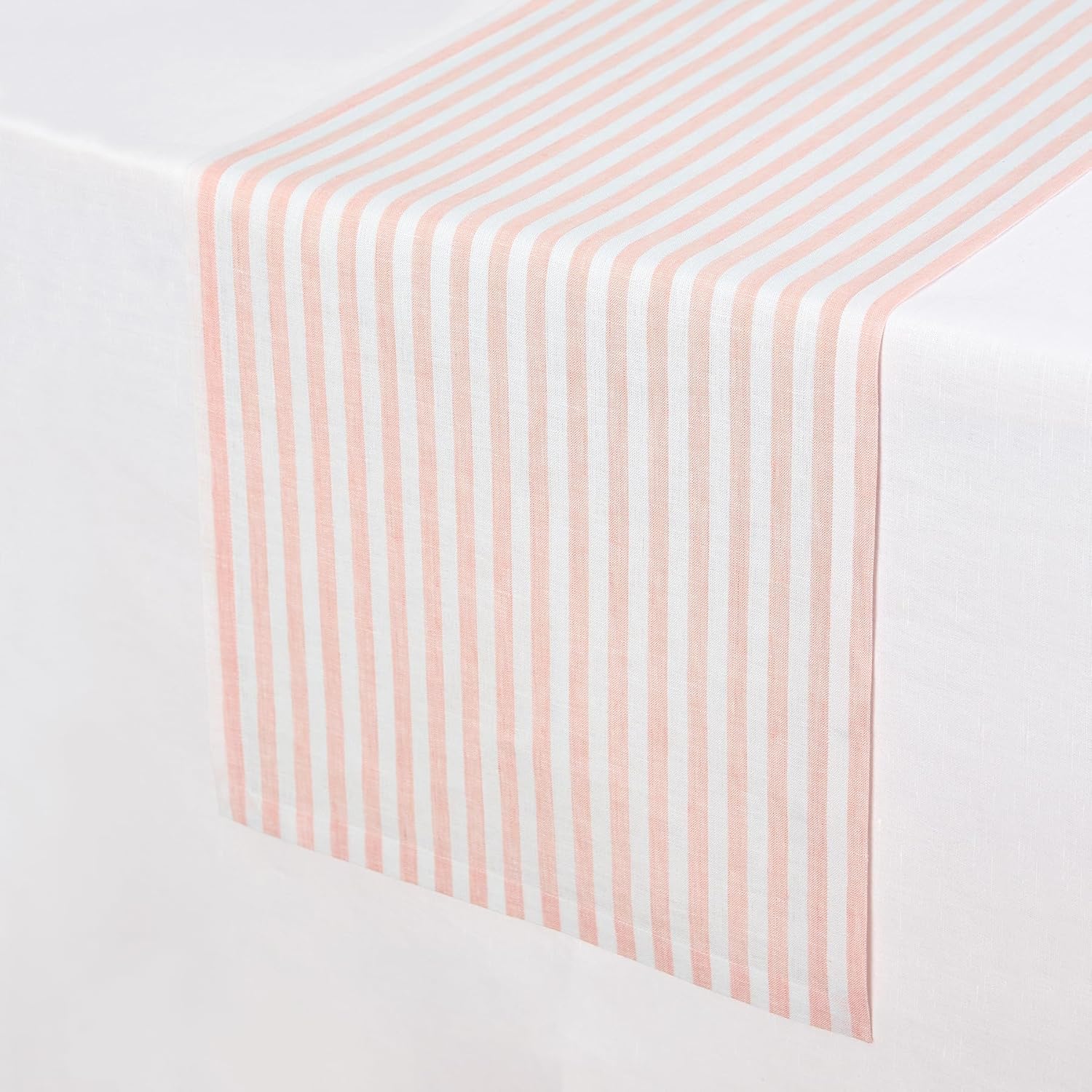• 𝗖𝗼𝗺𝗽𝗼𝘀𝗶𝘁𝗶𝗼𝗻 𝗮𝗻𝗱 𝗖𝗿𝗮𝗳𝘁𝘀𝗺𝗮𝗻𝘀𝗵𝗶𝗽 : 100% Pure European Flax Linen Coral and White Thanksgiving Table Runner - 𝗔𝗺𝗮𝗹𝗳𝗶 𝗦𝘁𝗿𝗶𝗽𝗲 | Handcrafted By Skilled Artisans.
