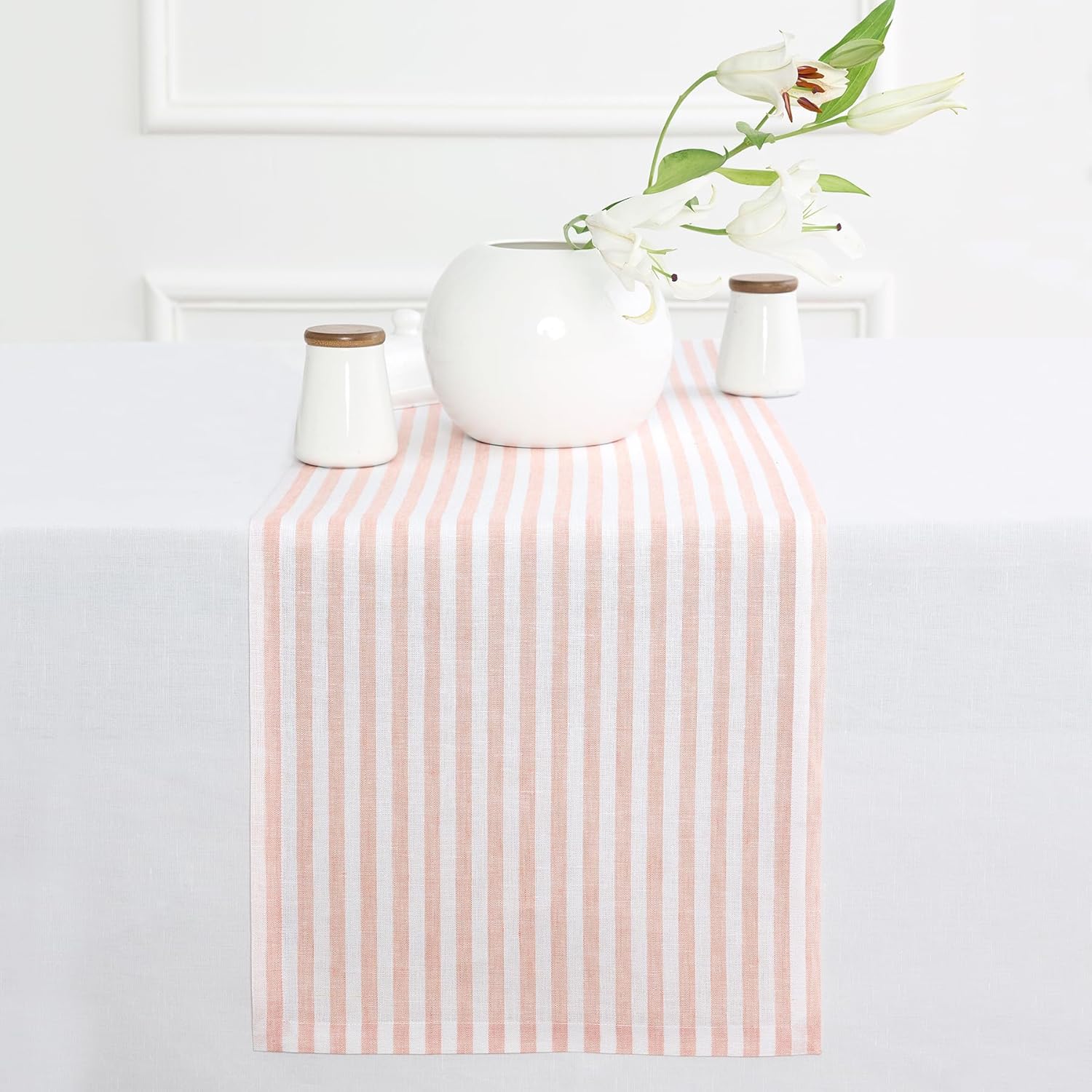 • 𝗖𝗼𝗺𝗽𝗼𝘀𝗶𝘁𝗶𝗼𝗻 𝗮𝗻𝗱 𝗖𝗿𝗮𝗳𝘁𝘀𝗺𝗮𝗻𝘀𝗵𝗶𝗽 : 100% Pure European Flax Linen Coral and White Thanksgiving Table Runner - 𝗔𝗺𝗮𝗹𝗳𝗶 𝗦𝘁𝗿𝗶𝗽𝗲 | Handcrafted By Skilled Artisans.