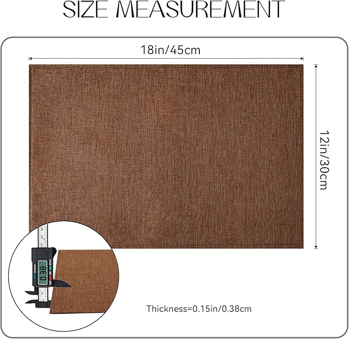 • THICKENED AND HEAT-RESISTANT: Our placemats feature a double-layered faux linen fabric which is heat-resistant up to 220°F (100°C) . They will prevent hot dishes, stains, and scratches from damaging your tables or furniture.