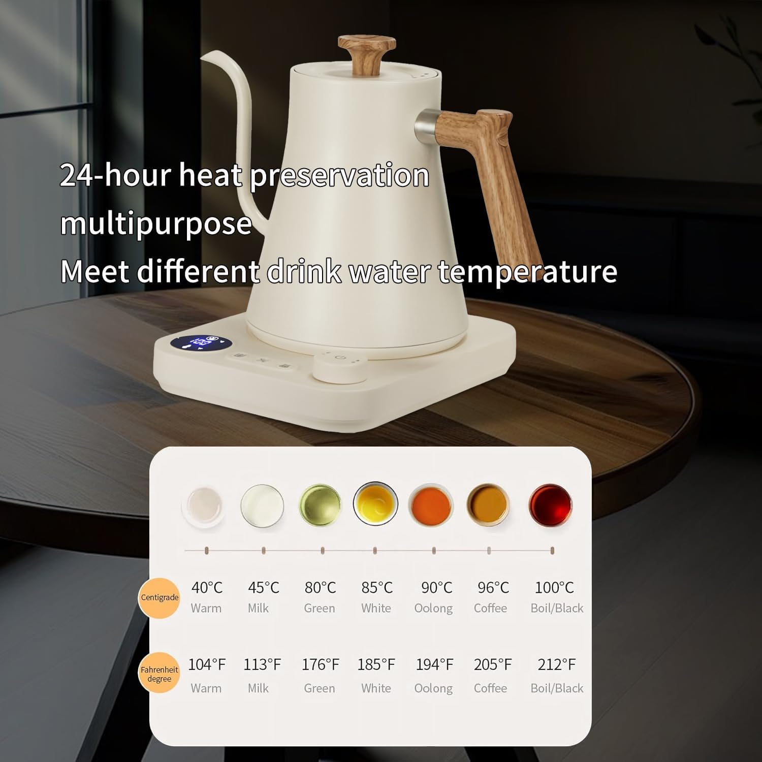 Electric Kettles, Gooseneck Electric Kettle, ±1℉ Temperature Control, Stainless Steel Inner, Quick Heating, for Pour Over Coffee, Brew Tea, Boil Hot Water, 0.9L (White)