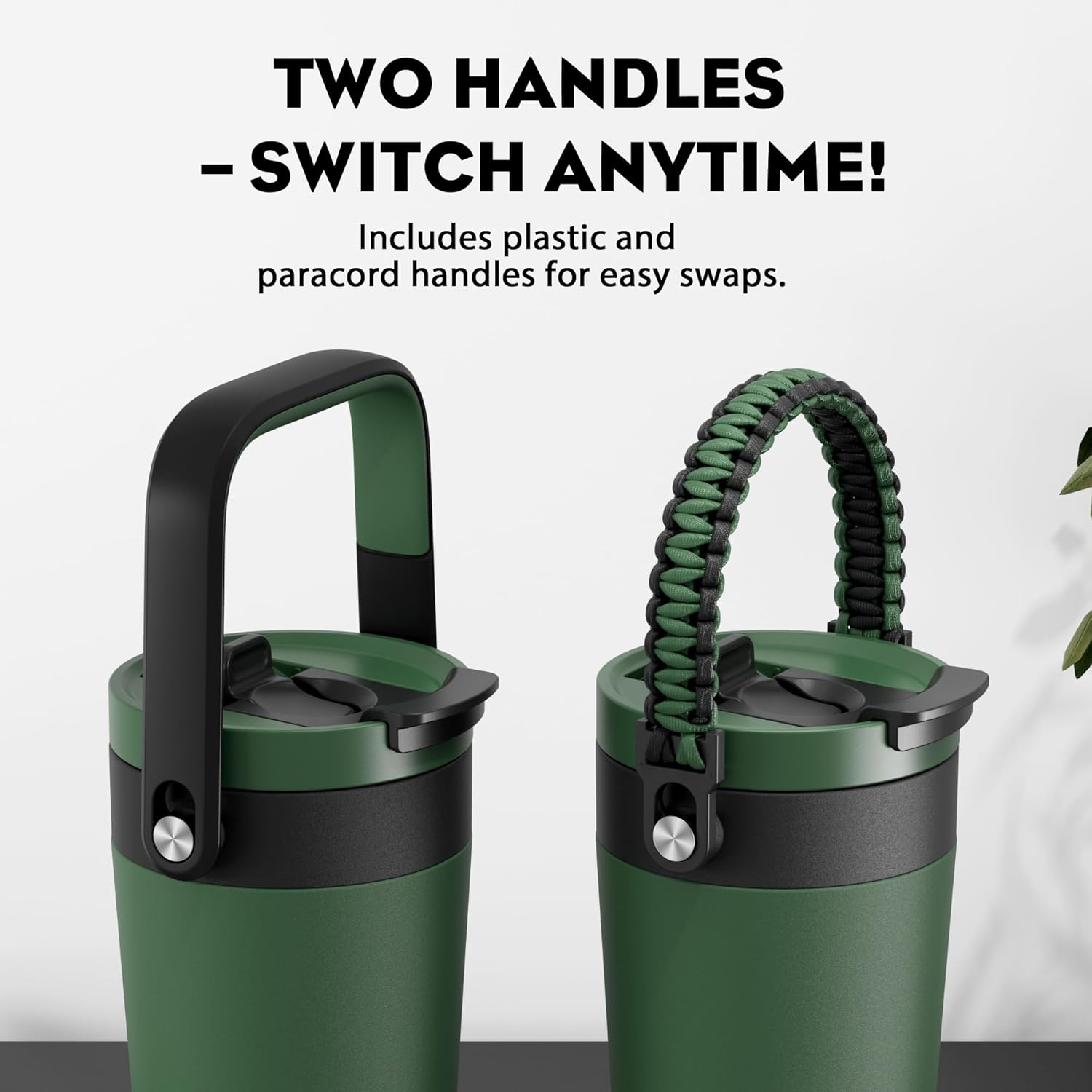 24 oz Insulated Coffee Mug for Gifts: 2-in-1 Straw Flip Lid, Keep Cold 24H, Fit in Car Cupholder, Leakproof, Stainless Steel Coffee Tumbler with Handle for Work, Travel, Camping and Home (Forest)