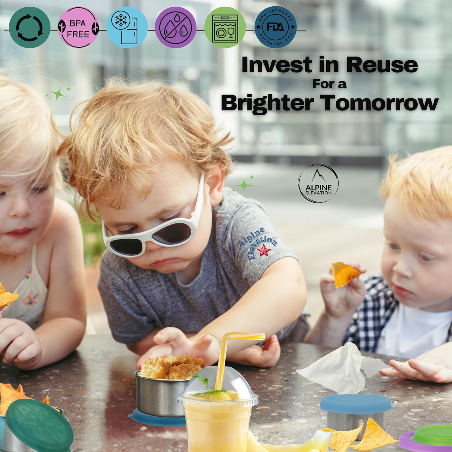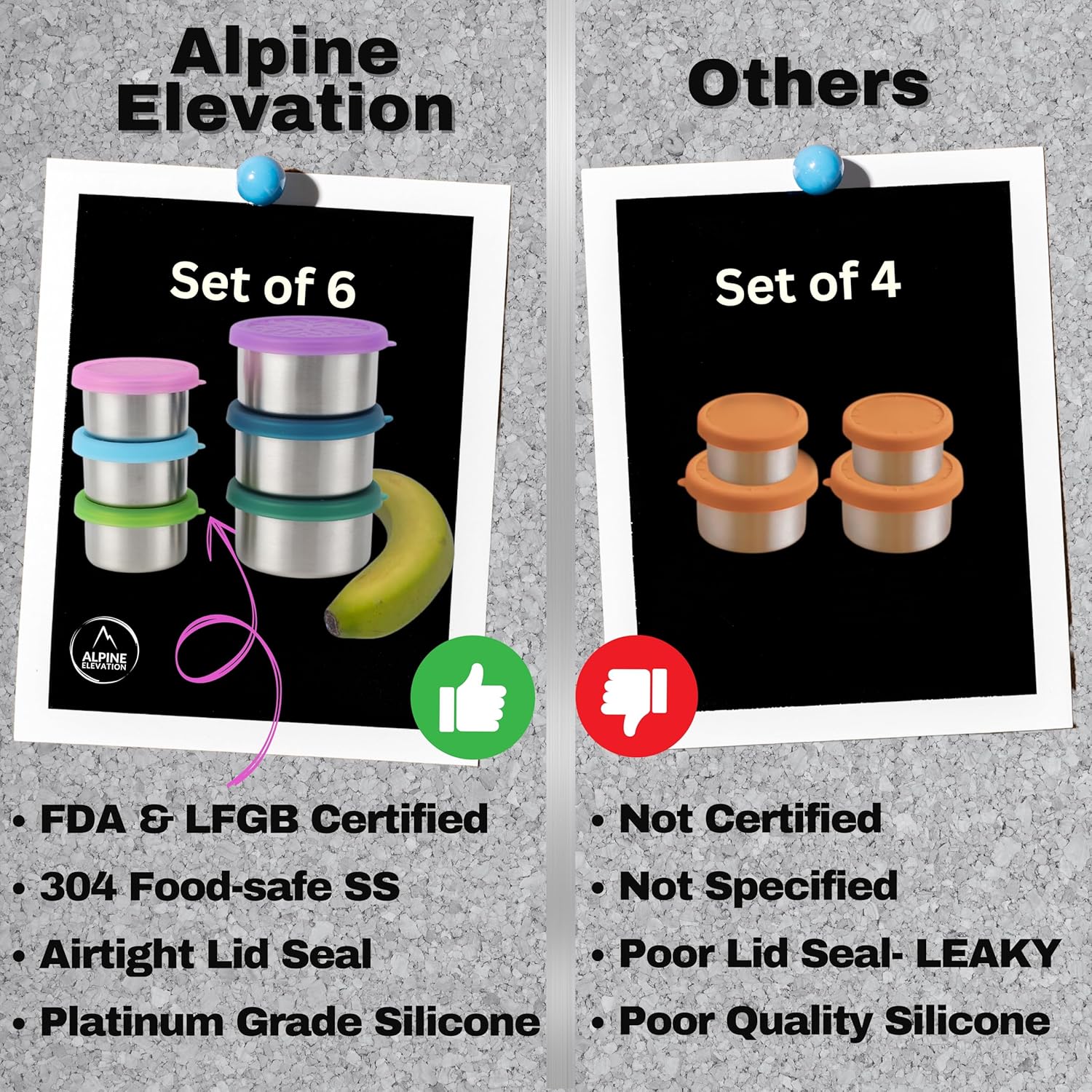 • Perfect Fit: Use Alpine Elevation stainless steel condiment containers for dips and sauces, or as metal snack containers for any adventure. Your ultimate stainless steel dip container!