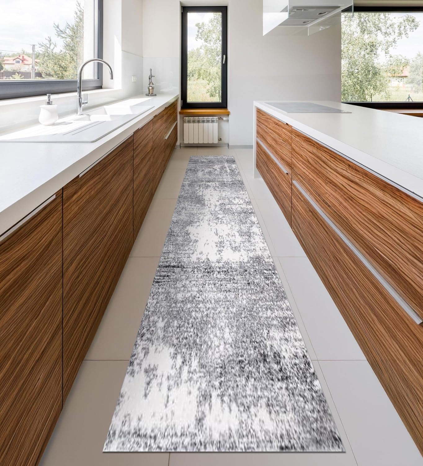 Keen Home Design Area Rugs - 2x14 Non-Shedding, Abstract Rugs for Kitchen, Living Room, Bedroom, Dining Room, Entryway - Size: 2'8" x 14', Abstract Cream/Grey