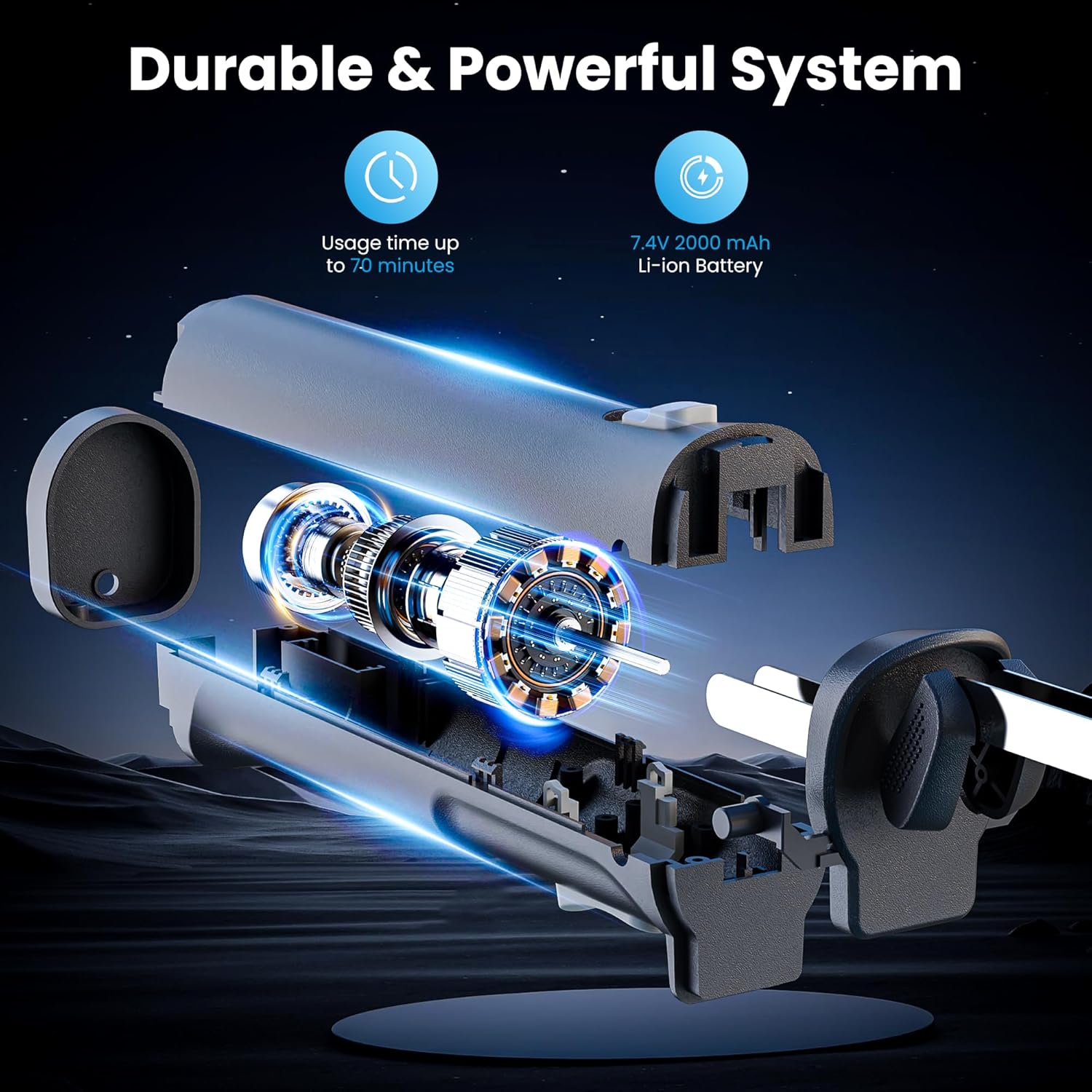 • CORDLESS & FAST CHARGE: DUSSAL cordless electric knives allow you to get rid of the outlet completely and operate freely anywhere in the kitchen without the need for a bulky power cord, improving efficiency and comfort. Powered by a 2000 mAh built-in lithium battery, it can be fully charged in just 2.5 hours and can be used continuously for up to 70 minutes!