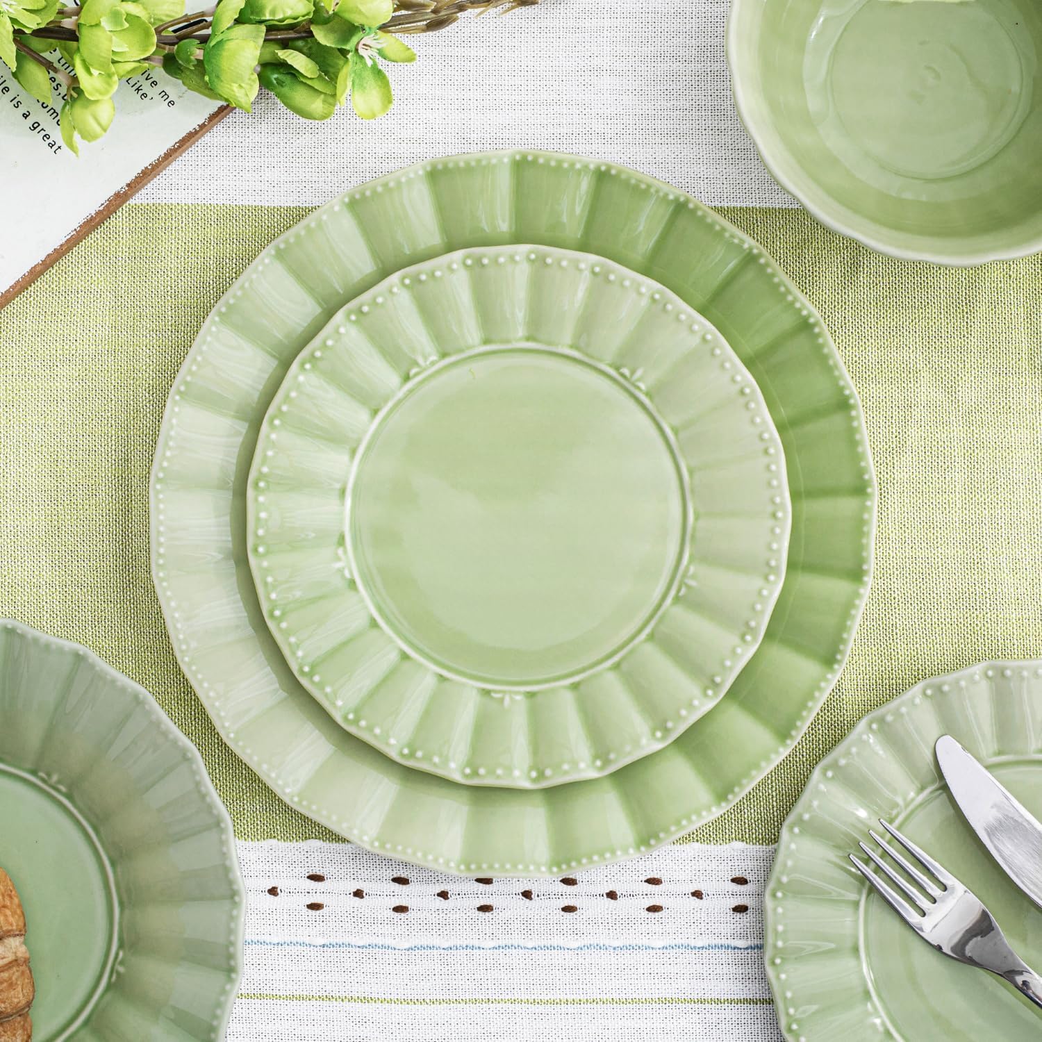12 Piece plates and bowls sets for 4, Dinnerware set, Porcelain Dish Set, House gift, Microwave and Dishwasher Safe, Mint Glow Green