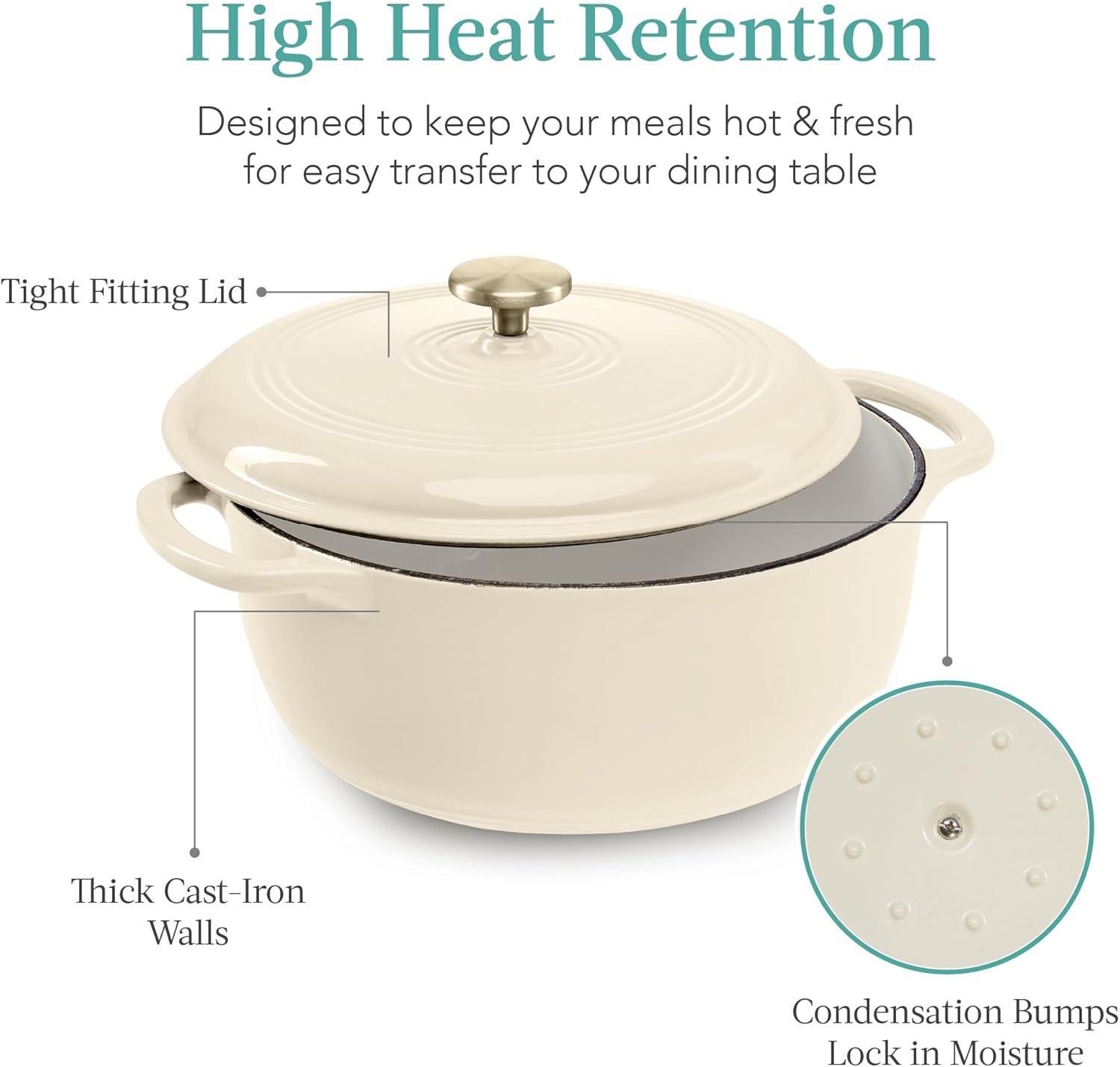 Best Choice Products 6 Quart Enamel Cast-Iron Round Dutch Oven, Family Style Heavy-Duty Pre-Seasoned Cookware for Home, Kitchen, Dining Room, Oven Safe w/Lid, Dual Handles - Vanilla Buttercream