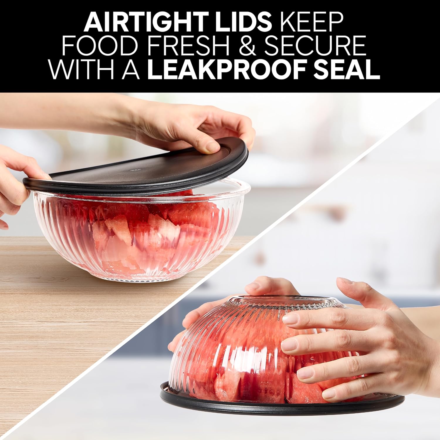 COOK WITH COLOR 12 Pc Glass Mixing Bowl Set with Lids – Borosilicate Glass Nesting Bowls for Cooking, Baking and Meal Prep, Fluted Black
