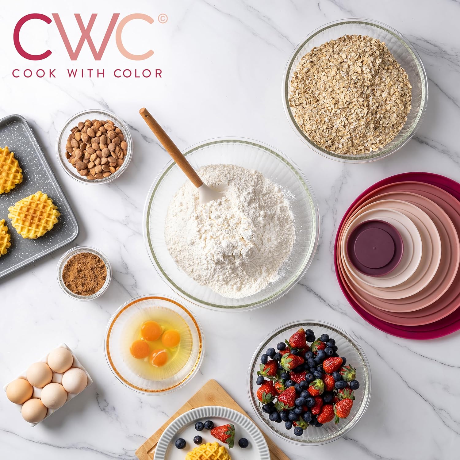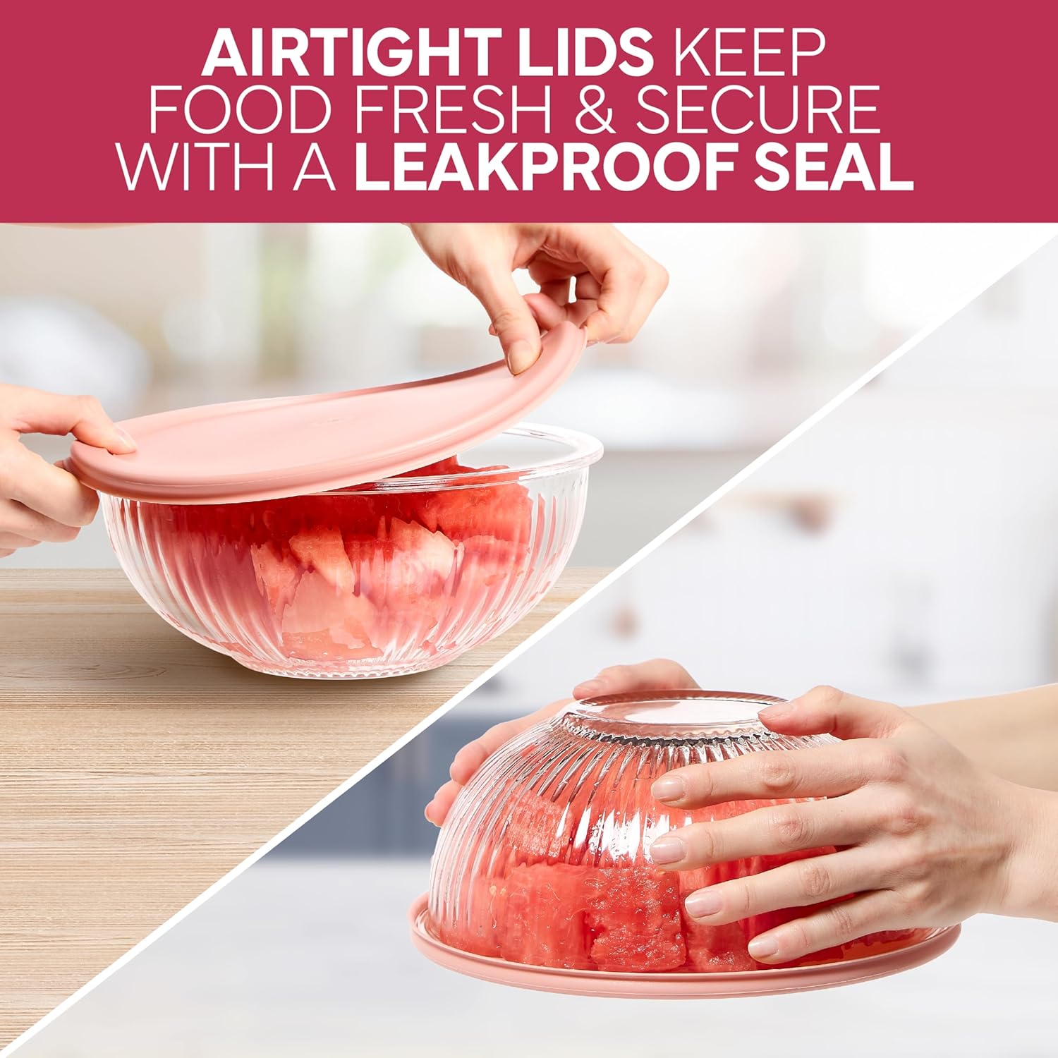 COOK WITH COLOR 12 Pc Glass Mixing Bowl Set with Lids – Borosilicate Glass Nesting Bowls for Cooking, Baking and Meal Prep, Fluted Rose