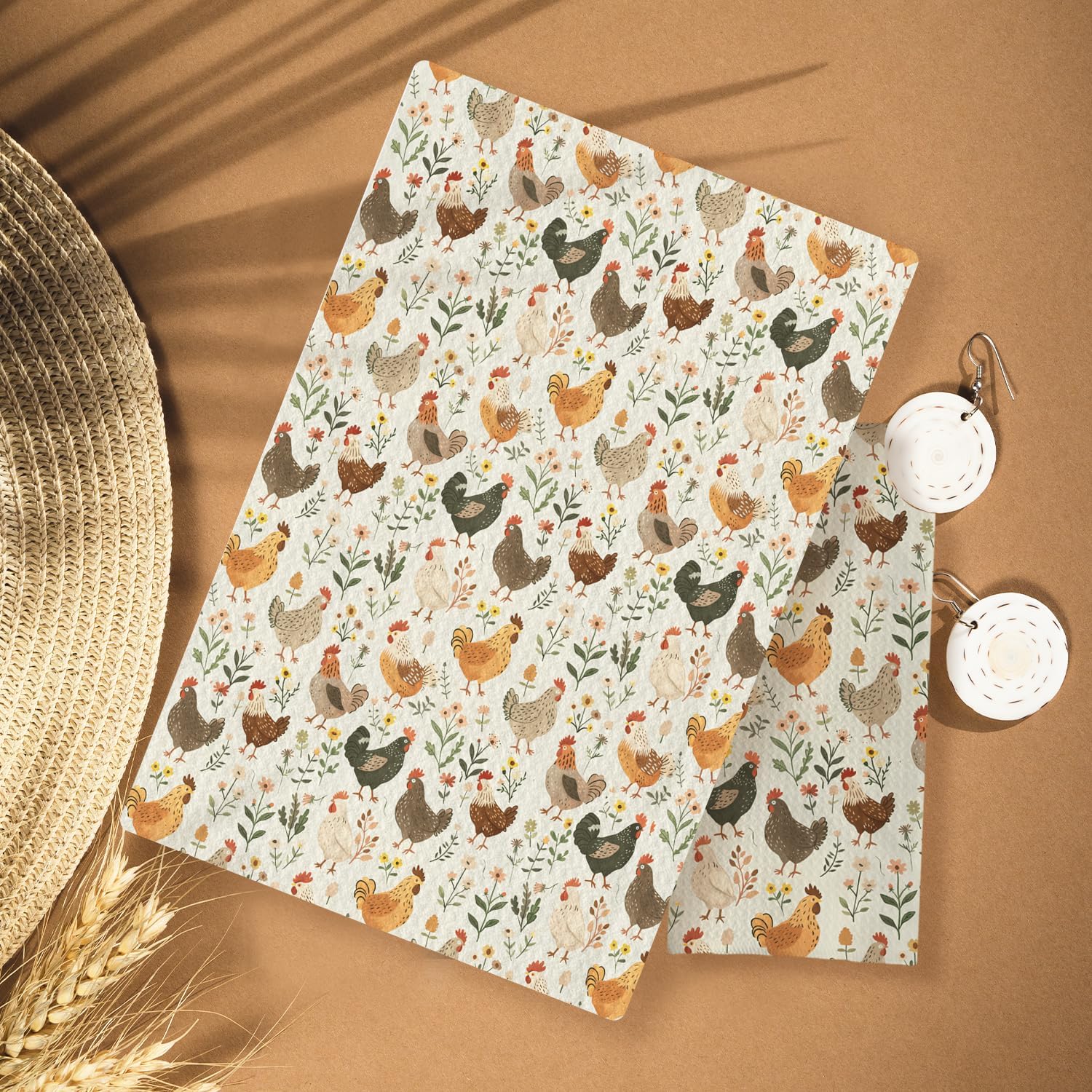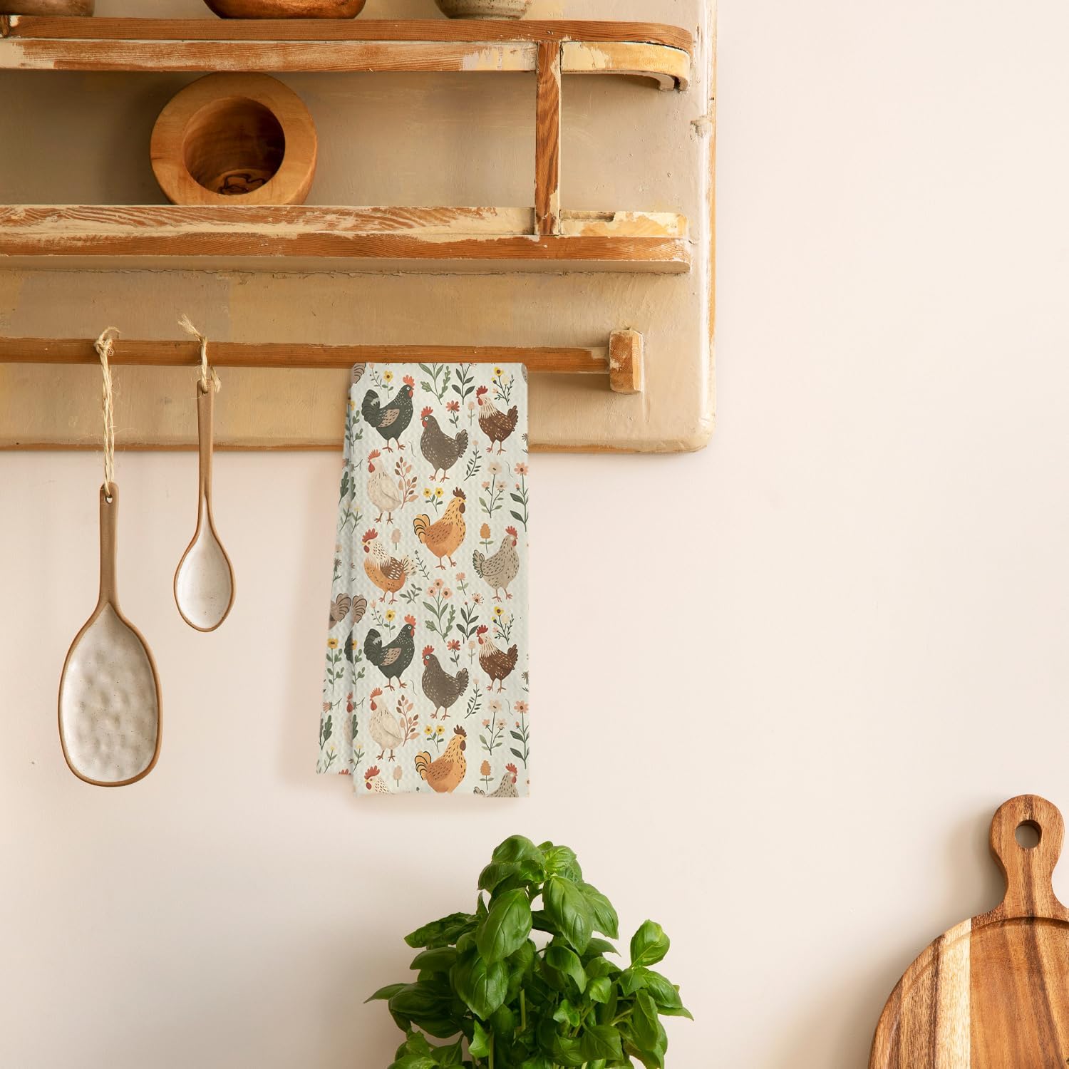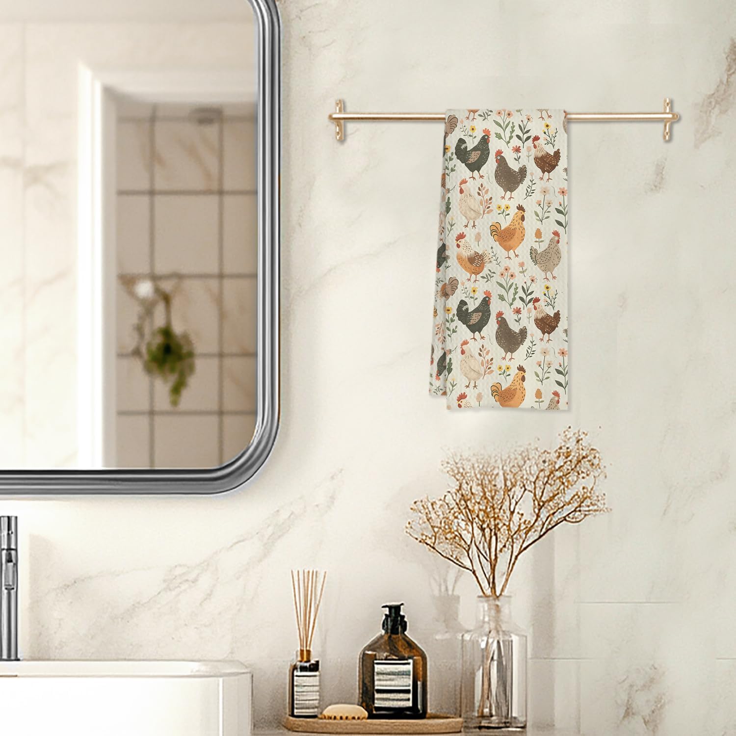 Farmhouse Chicken Rooster Kitchen Towels, Chicken Dish Towels, Rooster Decor Hand Towel for Bathroom Kitchen Decor, Cock Mom Lady Gifts, 16x24 Inch