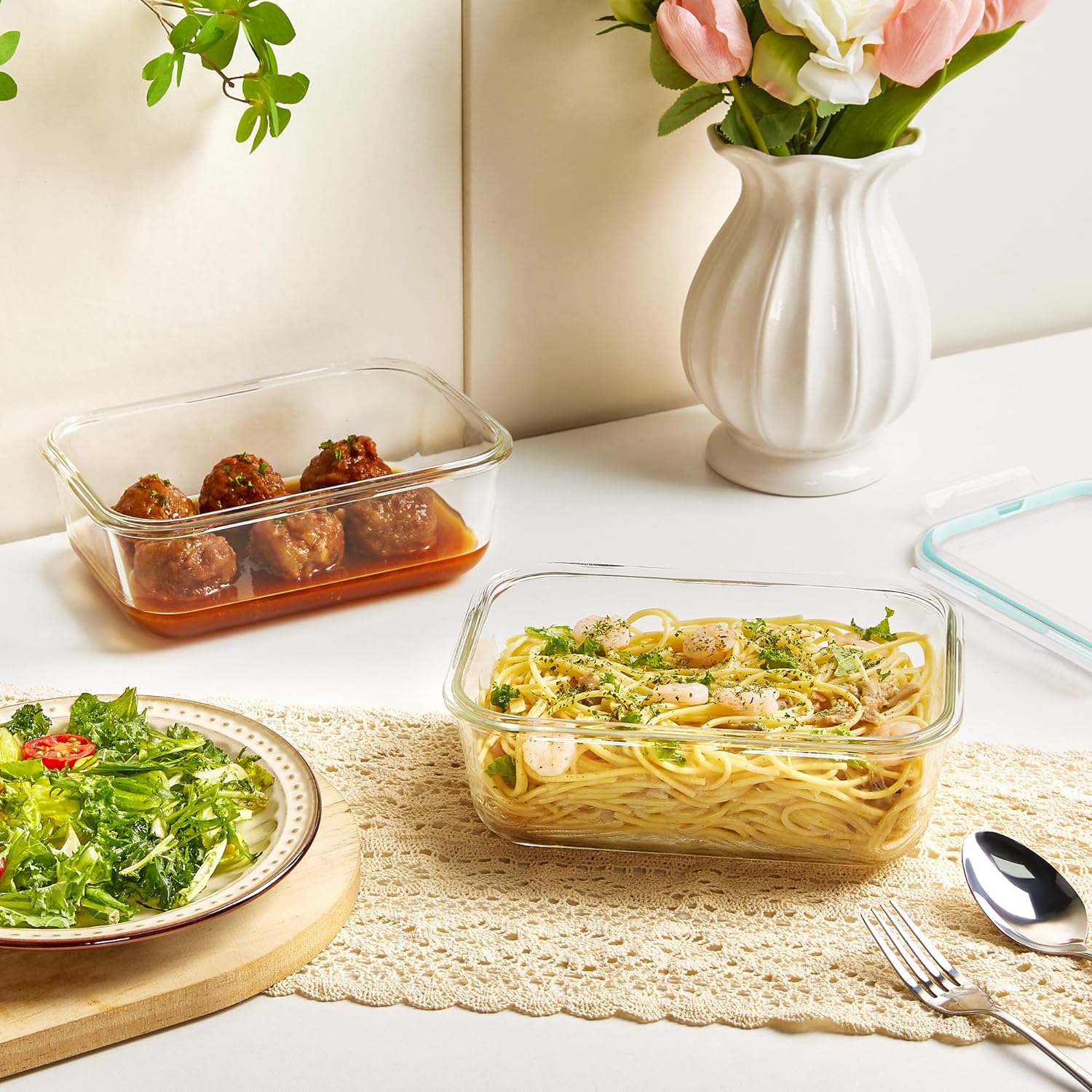 • 【Premium Glass & BPA Free】The glass containers are made of high quality borosilicate glass, making it safe for food storage. It is suitable for storing fruits, vegetables, salads, cereals, meals, meat, pasta, soups. It is a good choice for preparing meals at home, easy to get a healthy life.