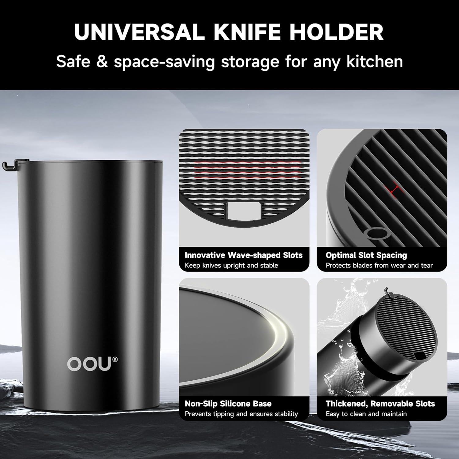 OOU Knife Set with Block and Sharpener, 6 Pcs High Carbon German Steel Kitchen Knife Block Set with Universal Knife Holder, Dishwasher Safe Knife Set for Small Kitchen, Space-Saving, Anti-Rust