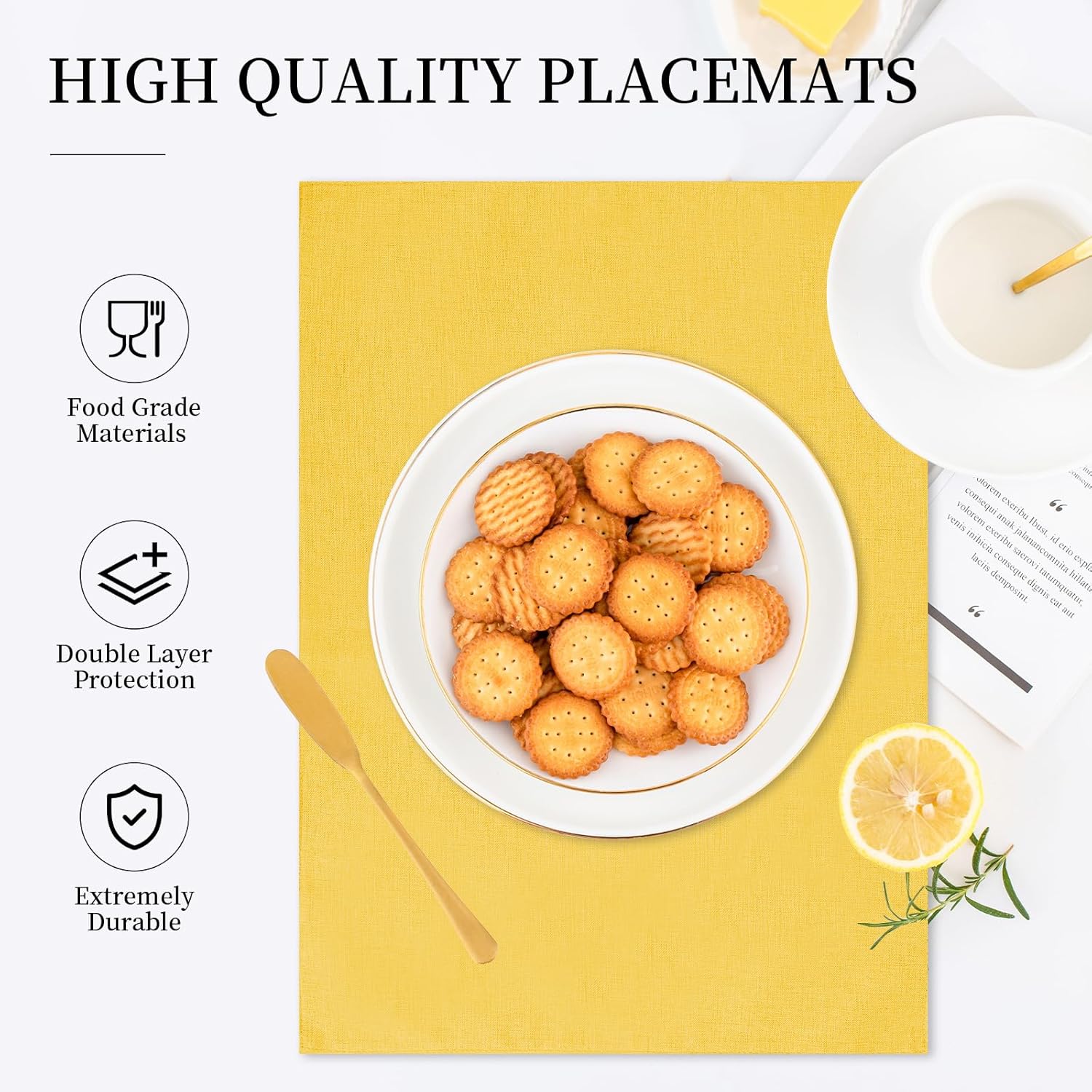 Placemats Set of 6 Linen Type Fabric Cloth Placemats, 19 x 13 Inch Double Layered Thick Wrinkle Free Heat Resistant Table Place, for Dining, Kitchen, Party (Yellow, 48 * 33cm)