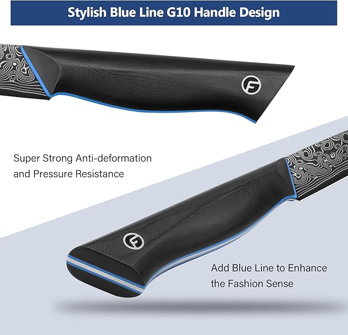 • 【Ergonomically Stylish G10 Handle】The handle of this fruit knife is made of G10 material, which is extremely durable. The blue line design runs through the handle, which not only retains perfect durability but also adds a sense of fashion, suitable for all people.