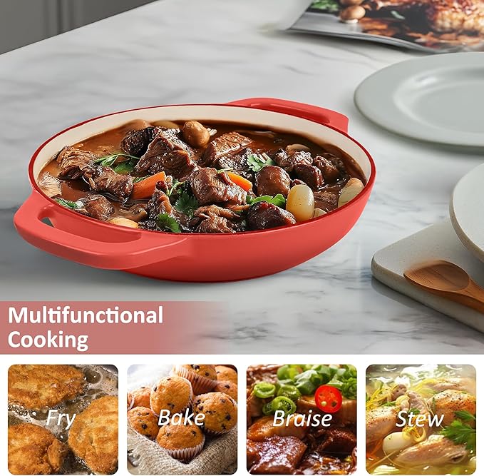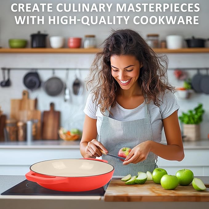 • Bake perfect bread every time: Designed with professional bakers in mind, this premium enameled cast iron Dutch oven is engineered for perfect bread baking. The tight-fitting lid traps steam, helps create a golden, crispy crust, and maximizes bread rising. It's ideal for sourdough, artisan, and bread baking, ensuring consistent, delicious results every time.